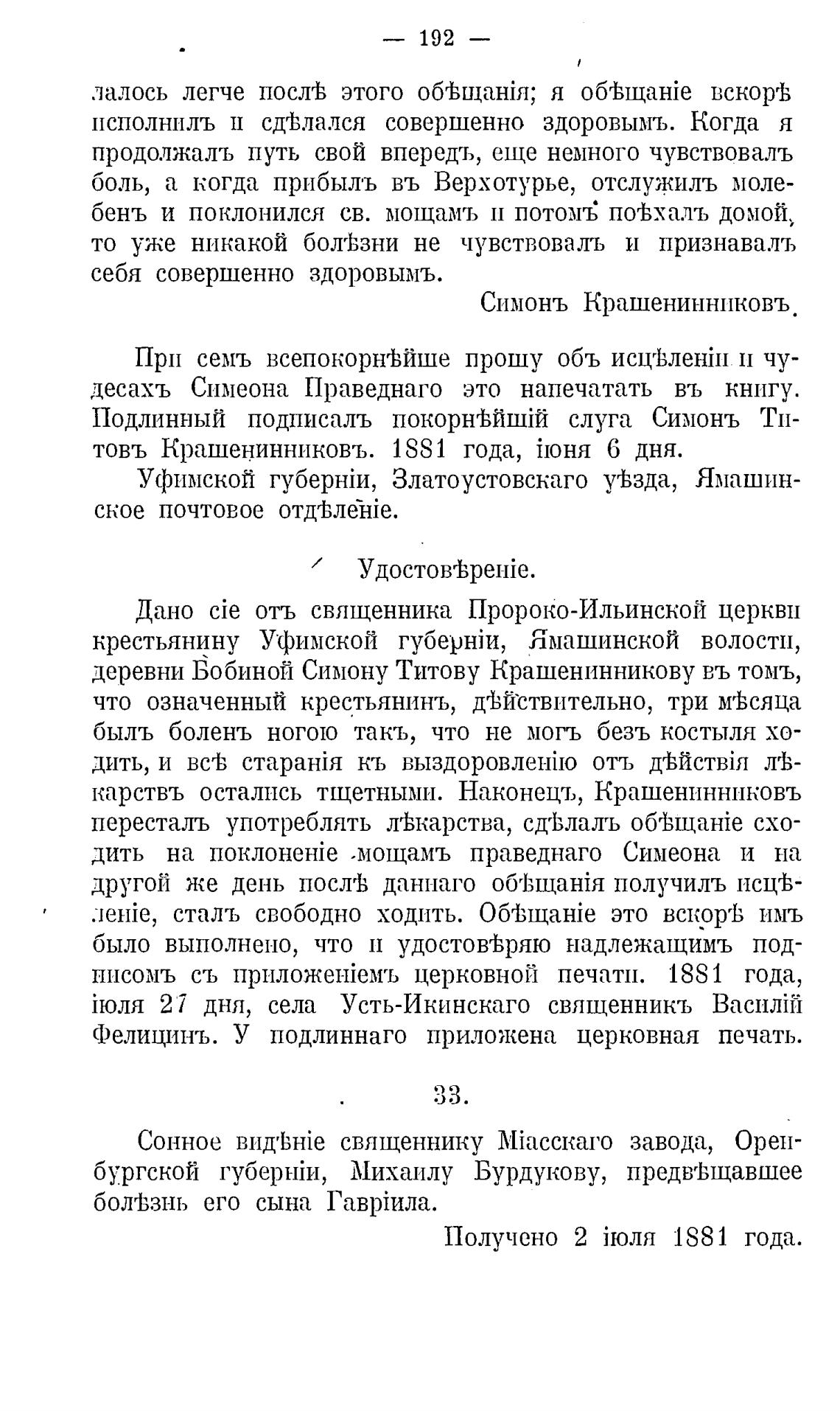 товъ Крашенинниковъ. 1881 года, i10HH 6 дня.