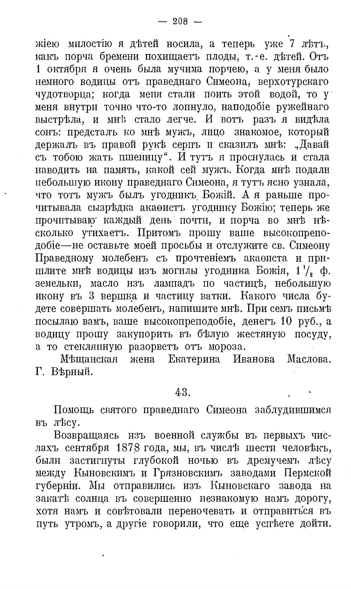 Помощь святого праведпаго Симеона заблудившимся