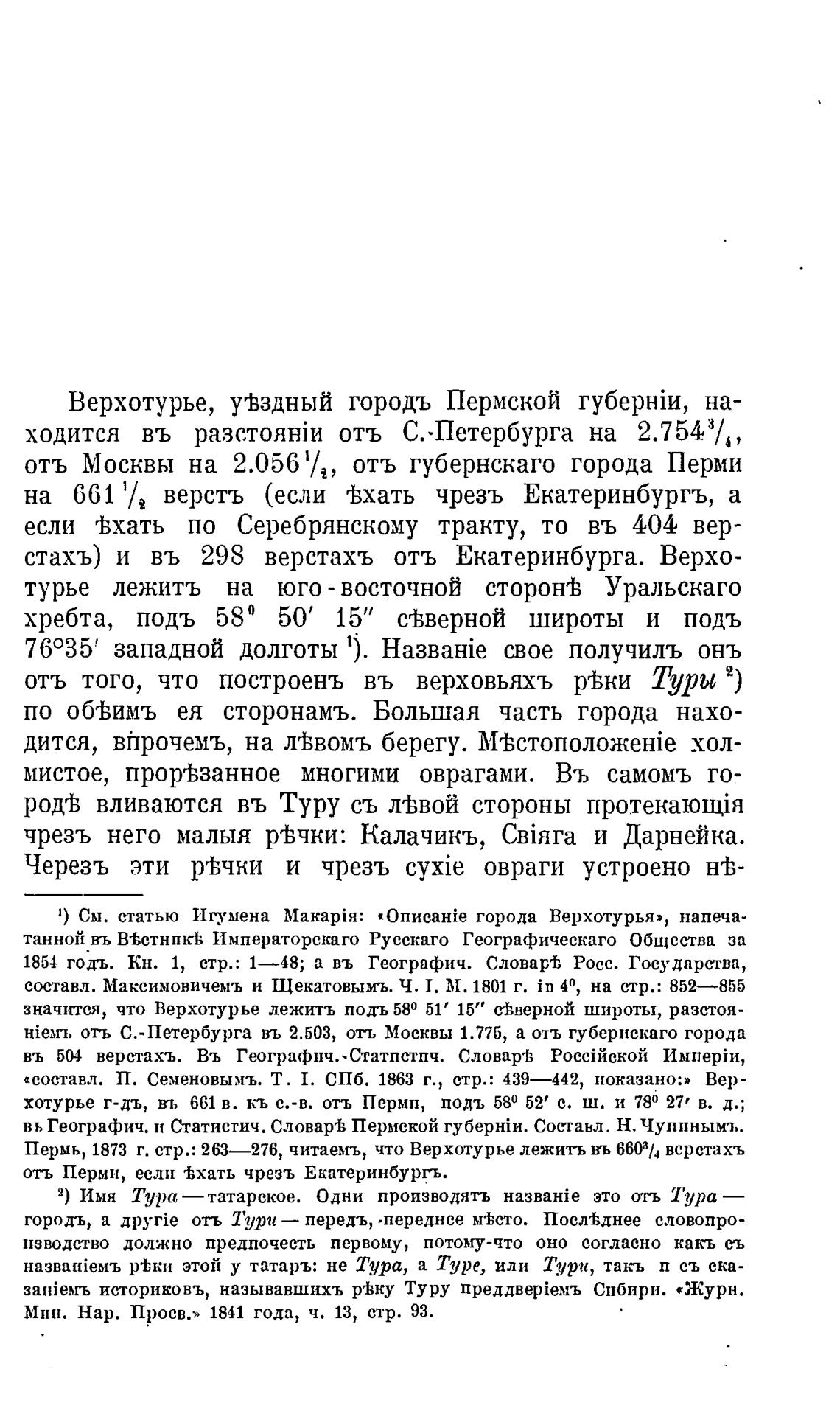 Пермь, 1873 г. стр.: 263—276, читаемъ, что Верхотурье лежить въ 6603/4 всрстахъ