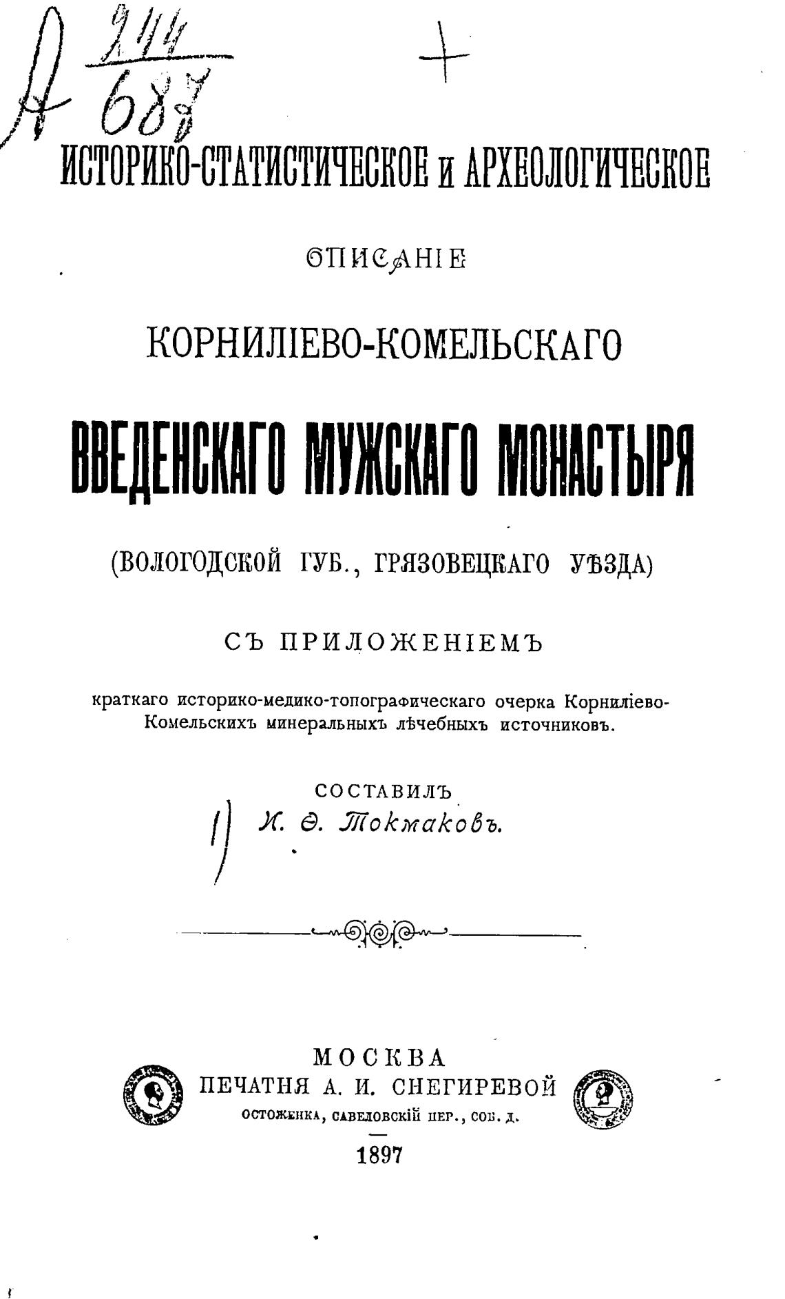(ВОЛОГОДСКОЙ ГУБ. , ГРЯЗОВЕЦКАГО УВЗДА)