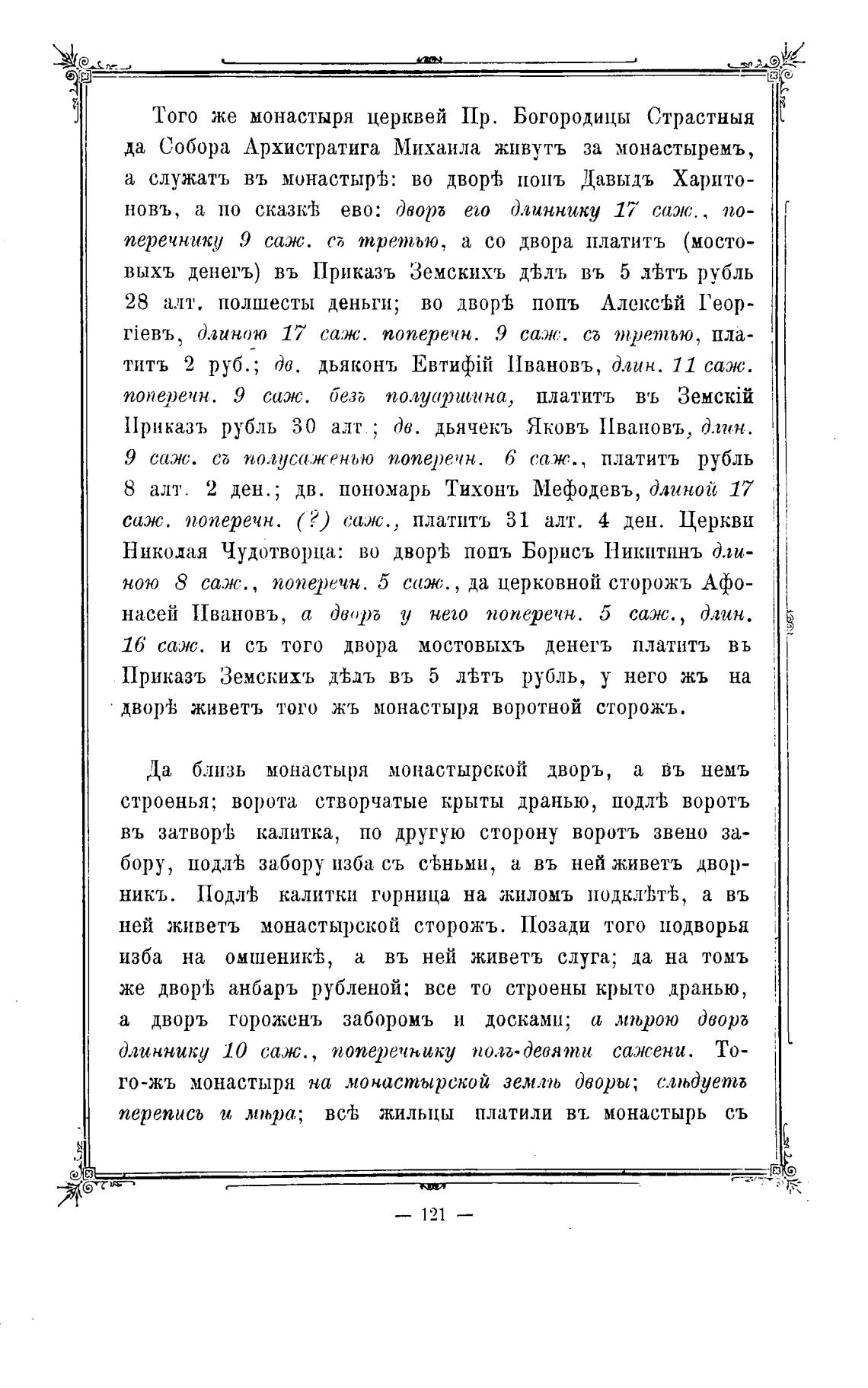 8 алт. 2 ден.; дв. пономарь Тихонь Мефодевъ, Длиной 17
