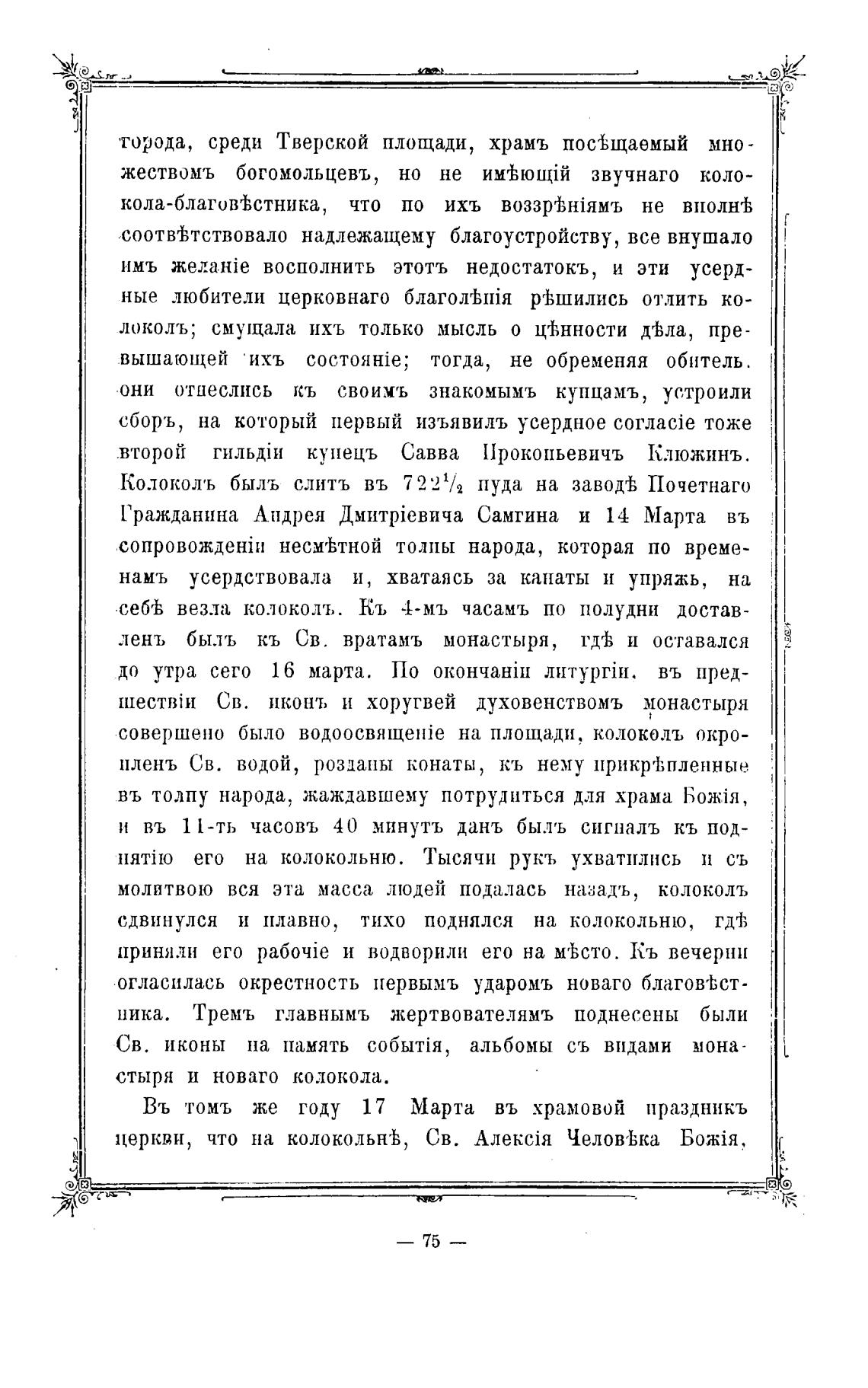 Колоколь быль слить въ 7221/2 пуда на Почетнаго