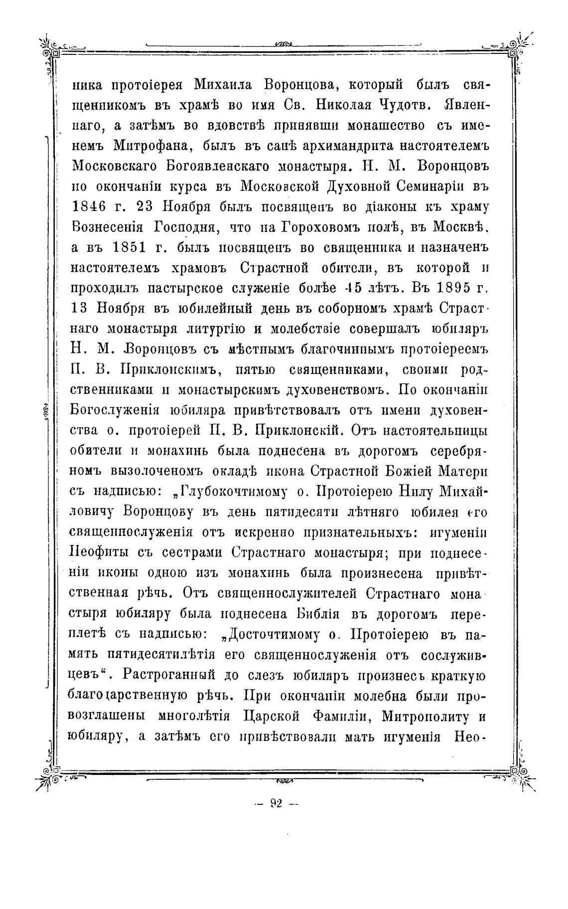 Московскаго Богоявленскаго монастыря. Н. М. Воронцовъ