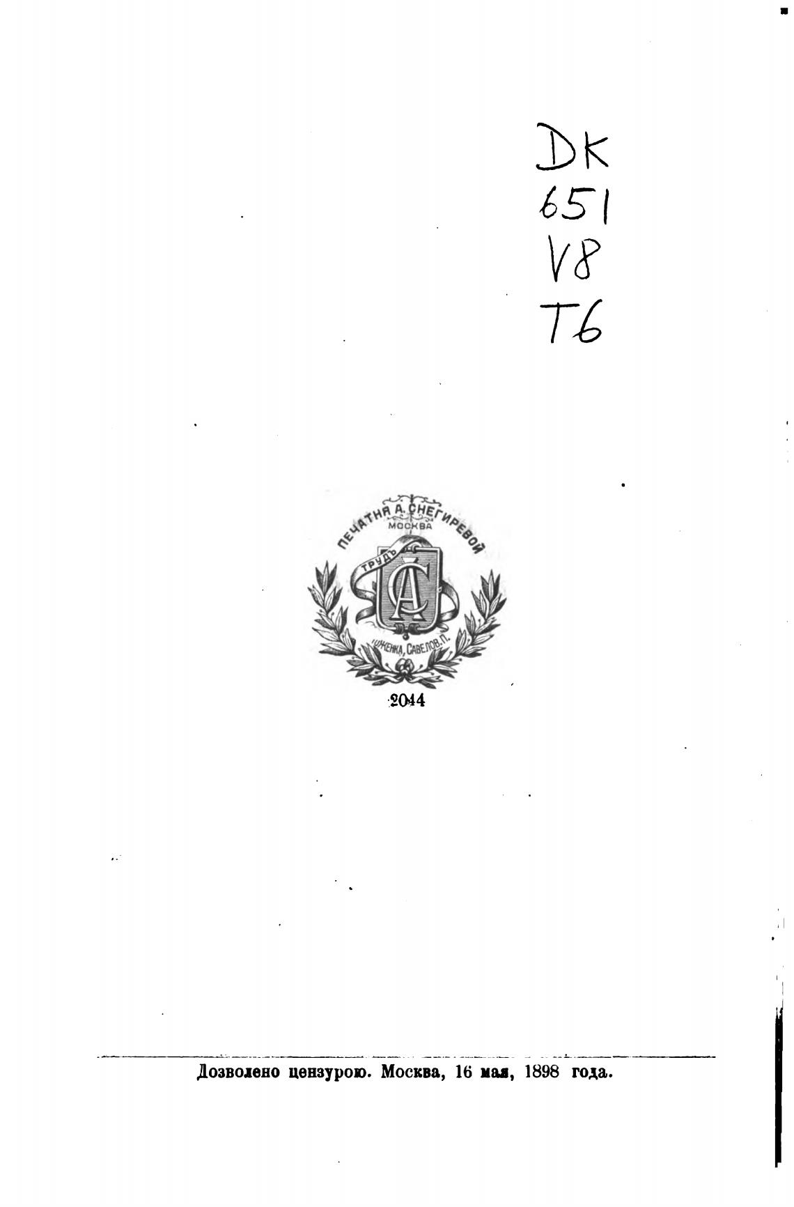 Дозволено цензурою. Москва, 16 мая, 1898 года.