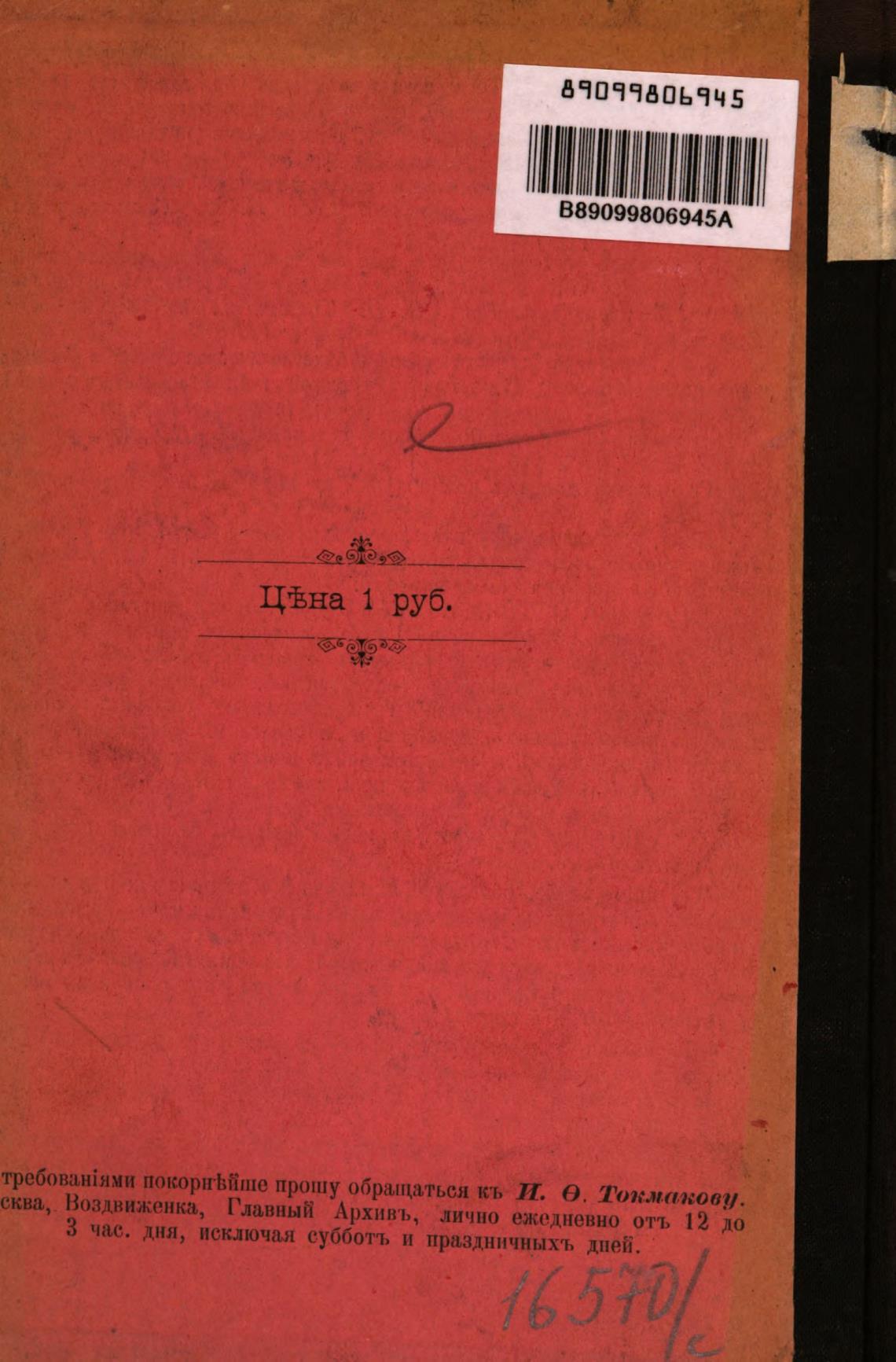 сква, Воздвиженка, Главный Архивъ, лично ежедневно отъ 1 2 до