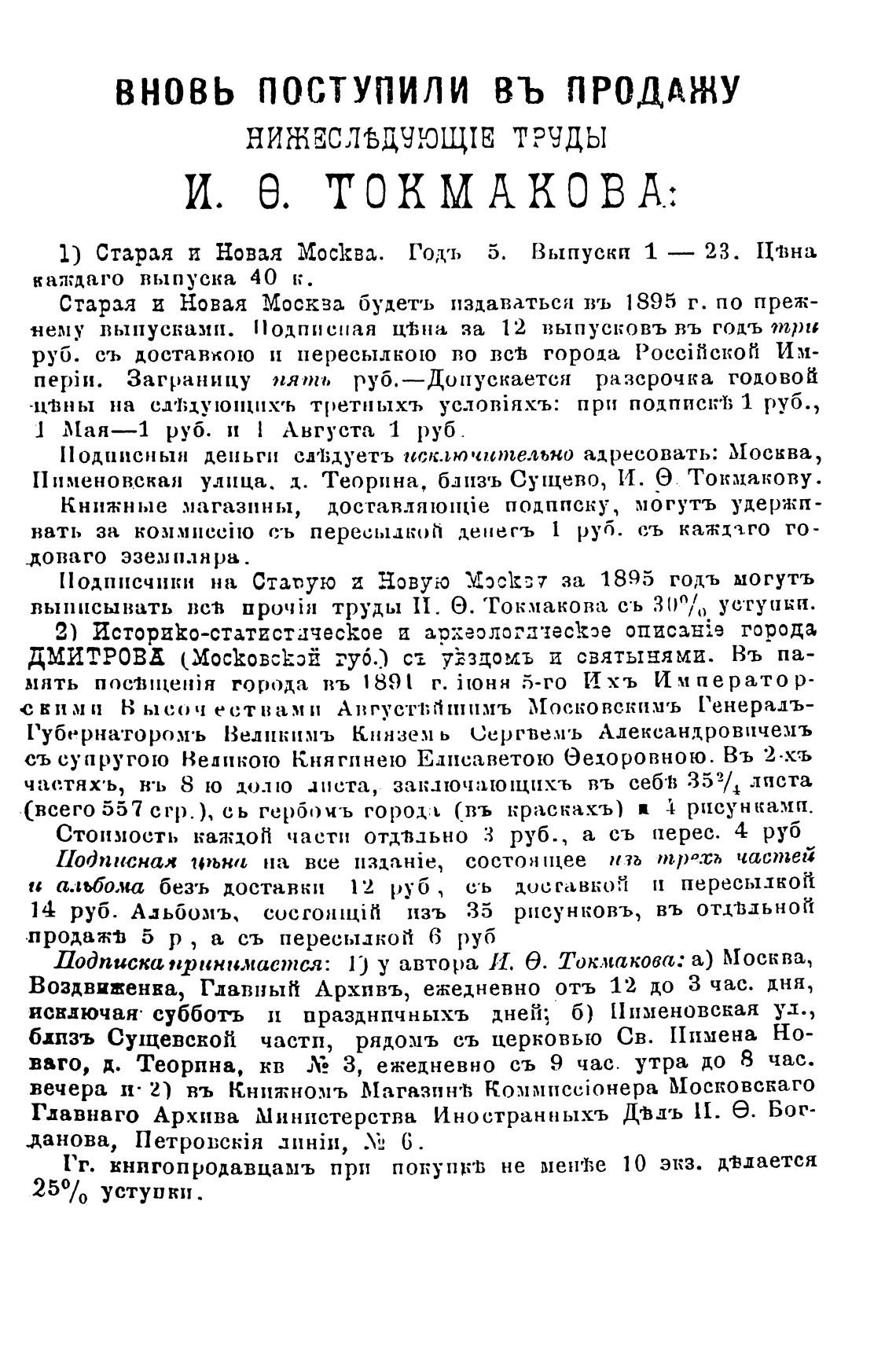 выписывать вст труды И. О. Токмакова съ 300/