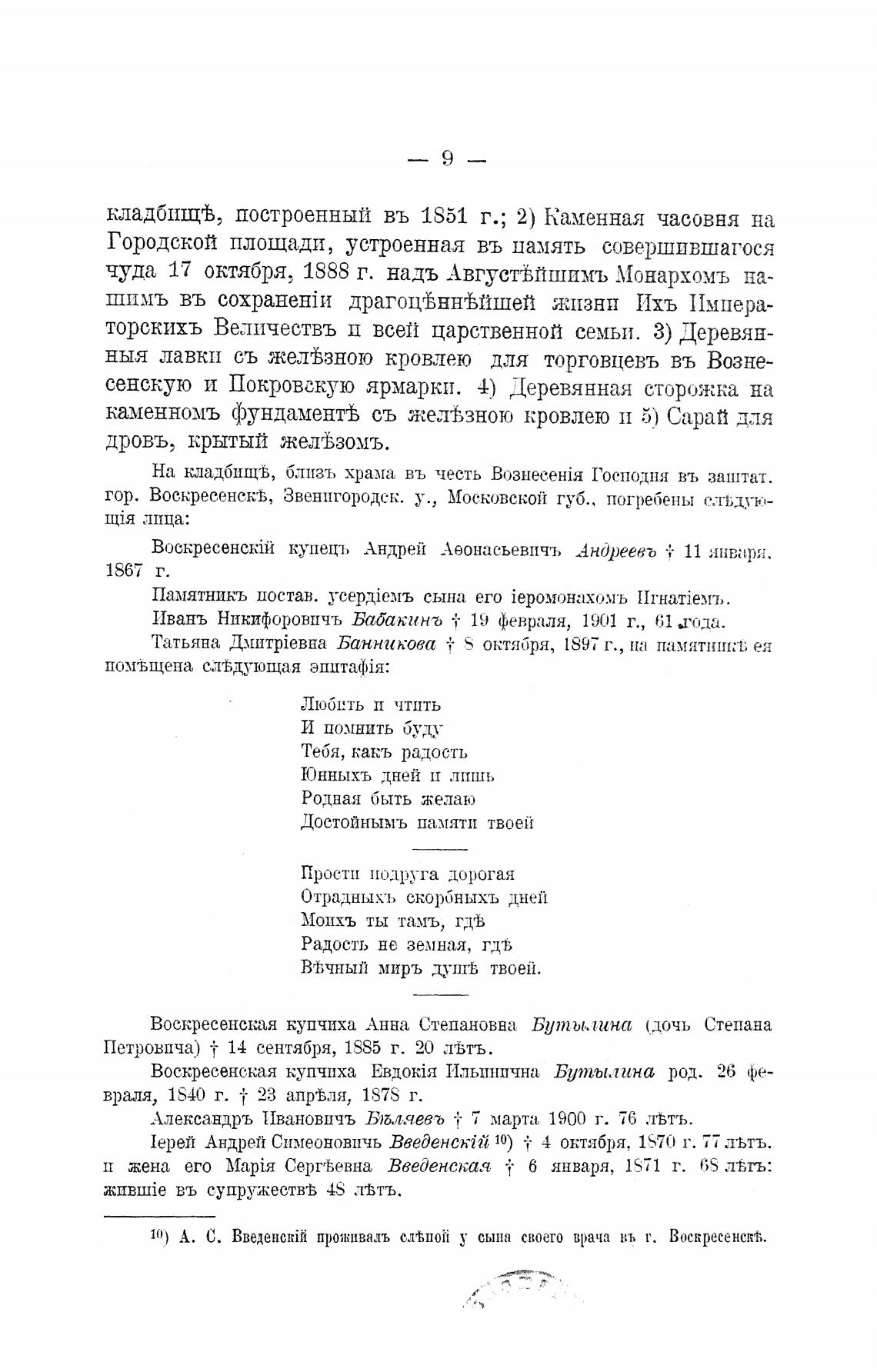 10) А. С. Введенс!йй проживалъ e.Tt,110ti у сына своего врача въ г. Воскресенск.