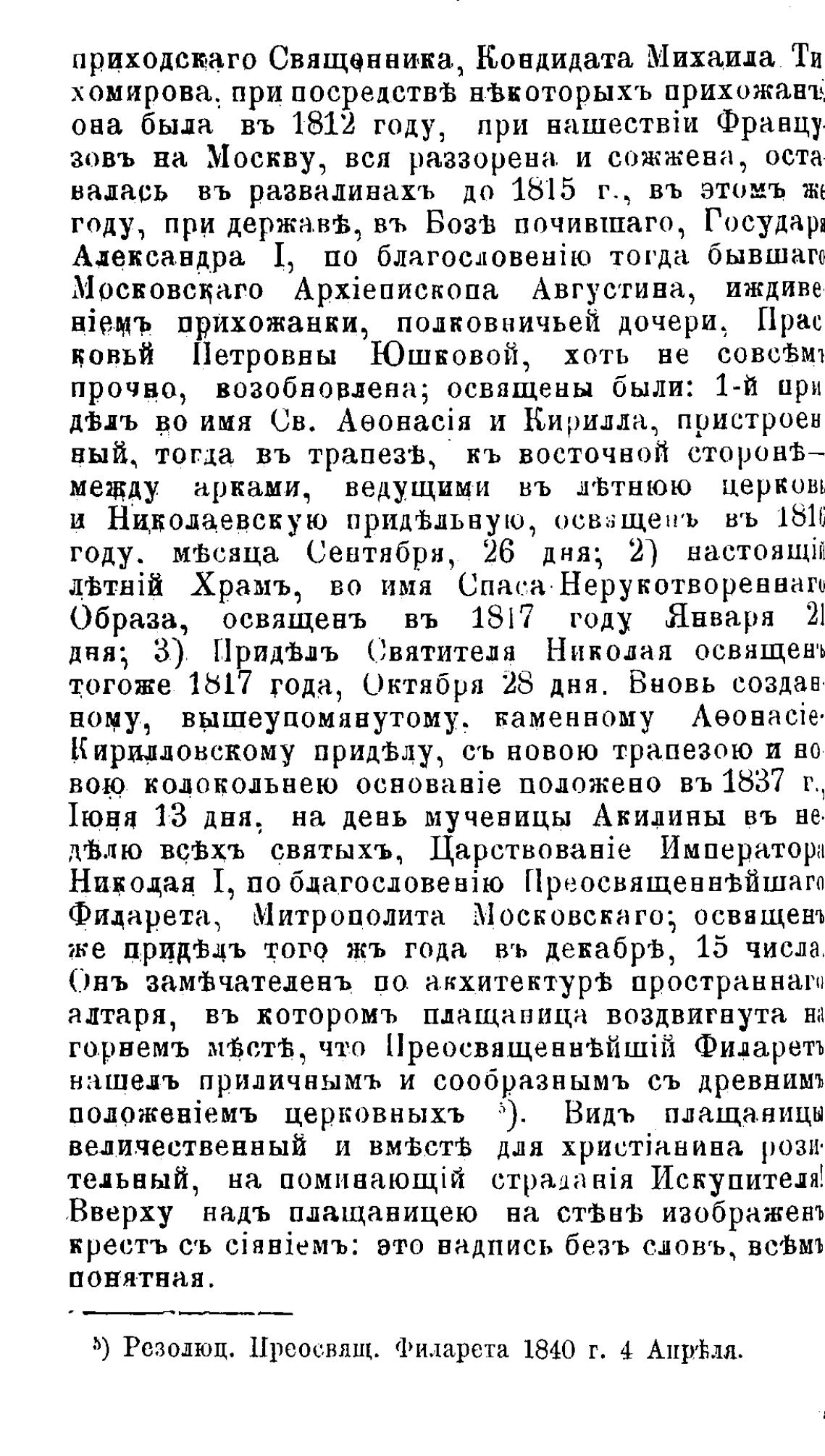 5) Резодюц. Преосвящ. Филарета 1840 г. 4 Аиртћлл.