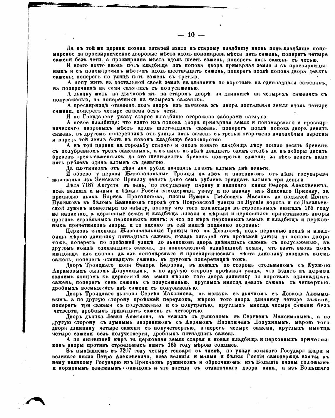 другоиъ концв одинањдцать сажень, да новоочисгапй кладбишвой земли, что ванта вновь подъ