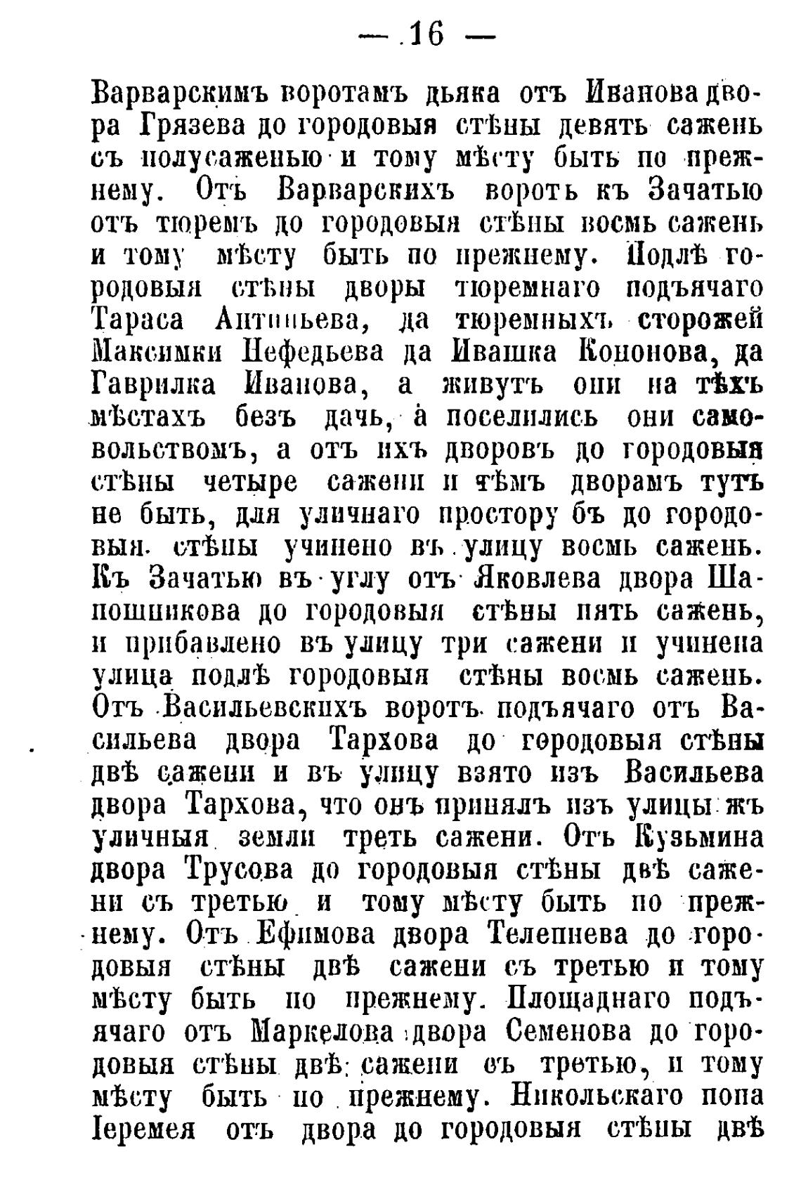улица подув городовын стФ»ны вос,мь сажень.
