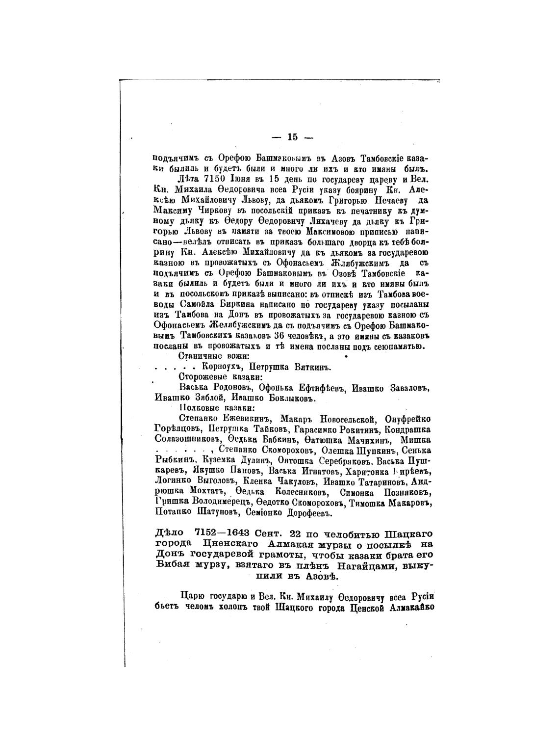 Д±ло 7152—1643 Сент. 22 по челобитью Шацваго