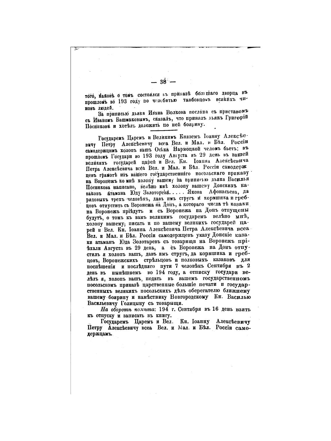 день въ нын±шнемъ во 194 году, а отписку государи ве-