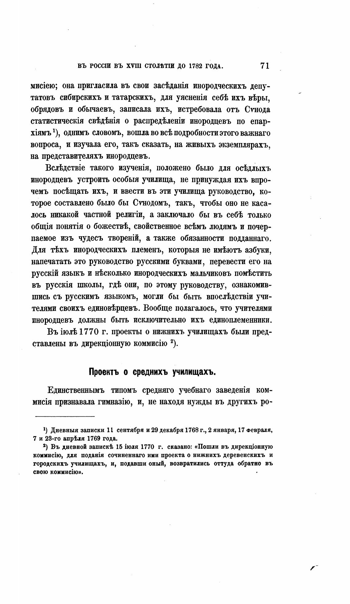 Въ 1770 г. проекты о нижнихъ училищахъ были пред-