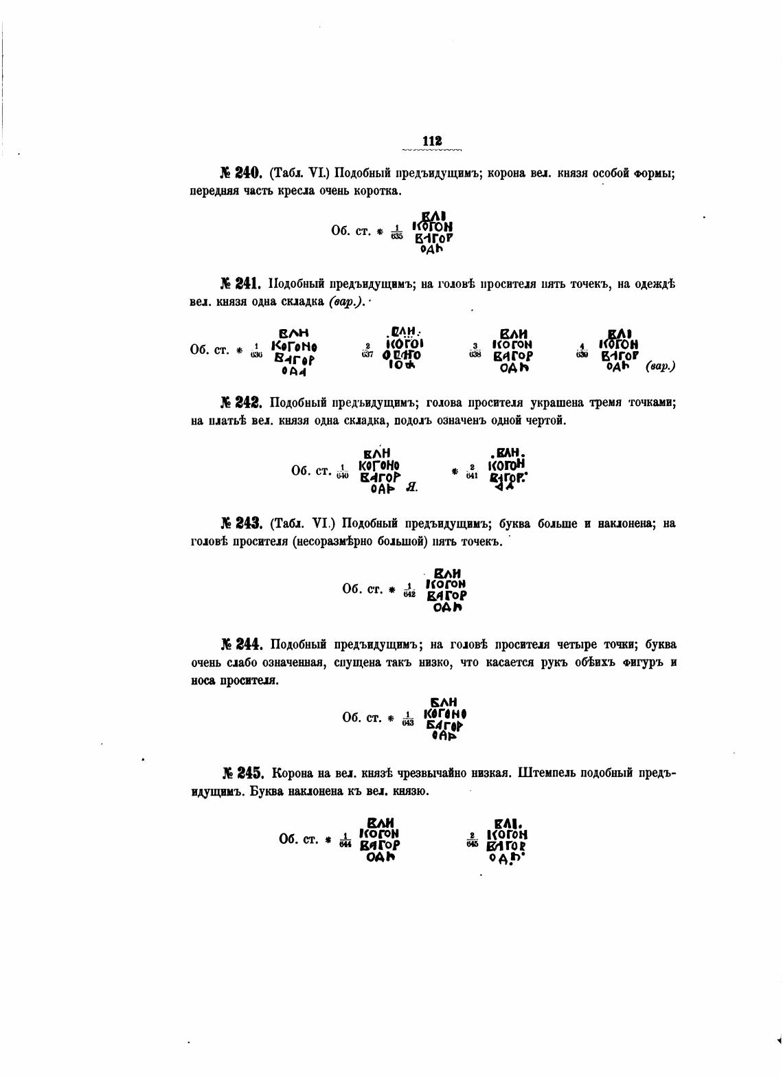 240. (Табл. VI.) Подобный иредъикущимъ; корона вел. князя ос(Тй Формы;