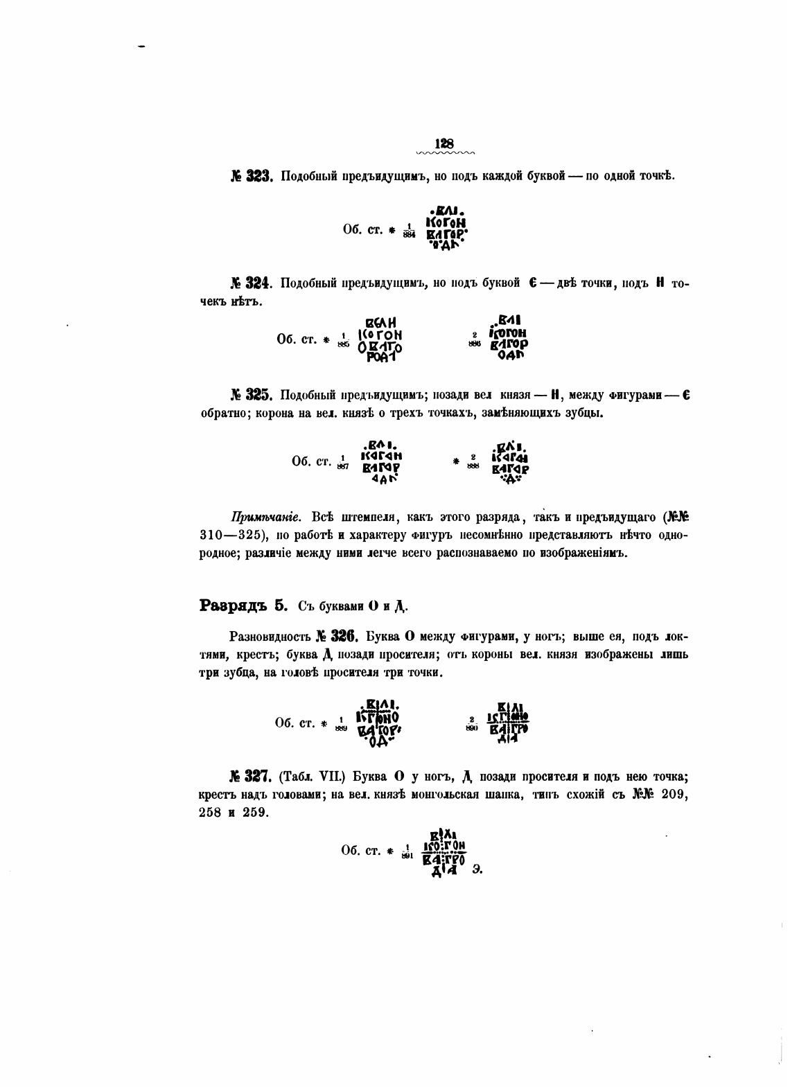 327. (Табл. VII.) Буква О у ногь, Д позади просителя и подъ нею точка;