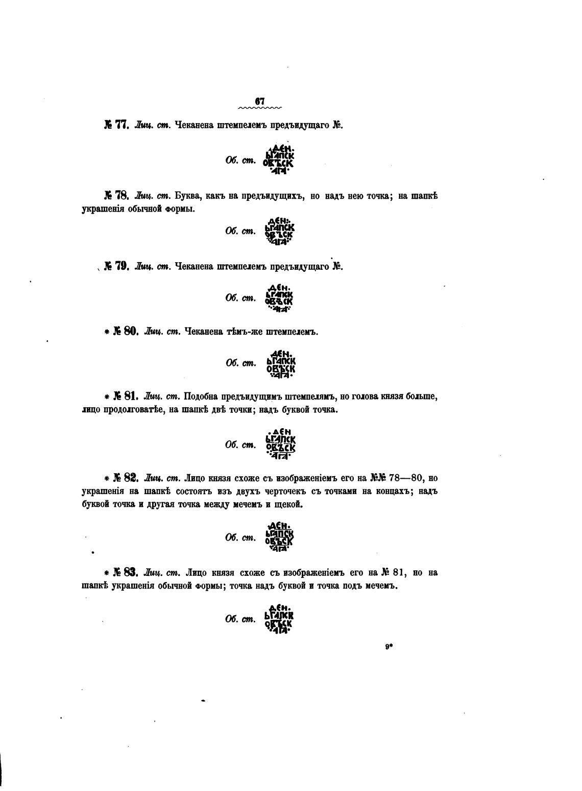 * 81. Лии. ст. Понта предъиџщвмъ штемпелямъ, но голова князя бош,ше,
