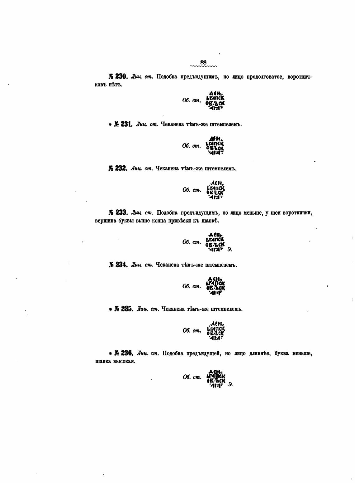 * 231. Лии. ст. Чеканена тЬмъ-же штемпелемъ.