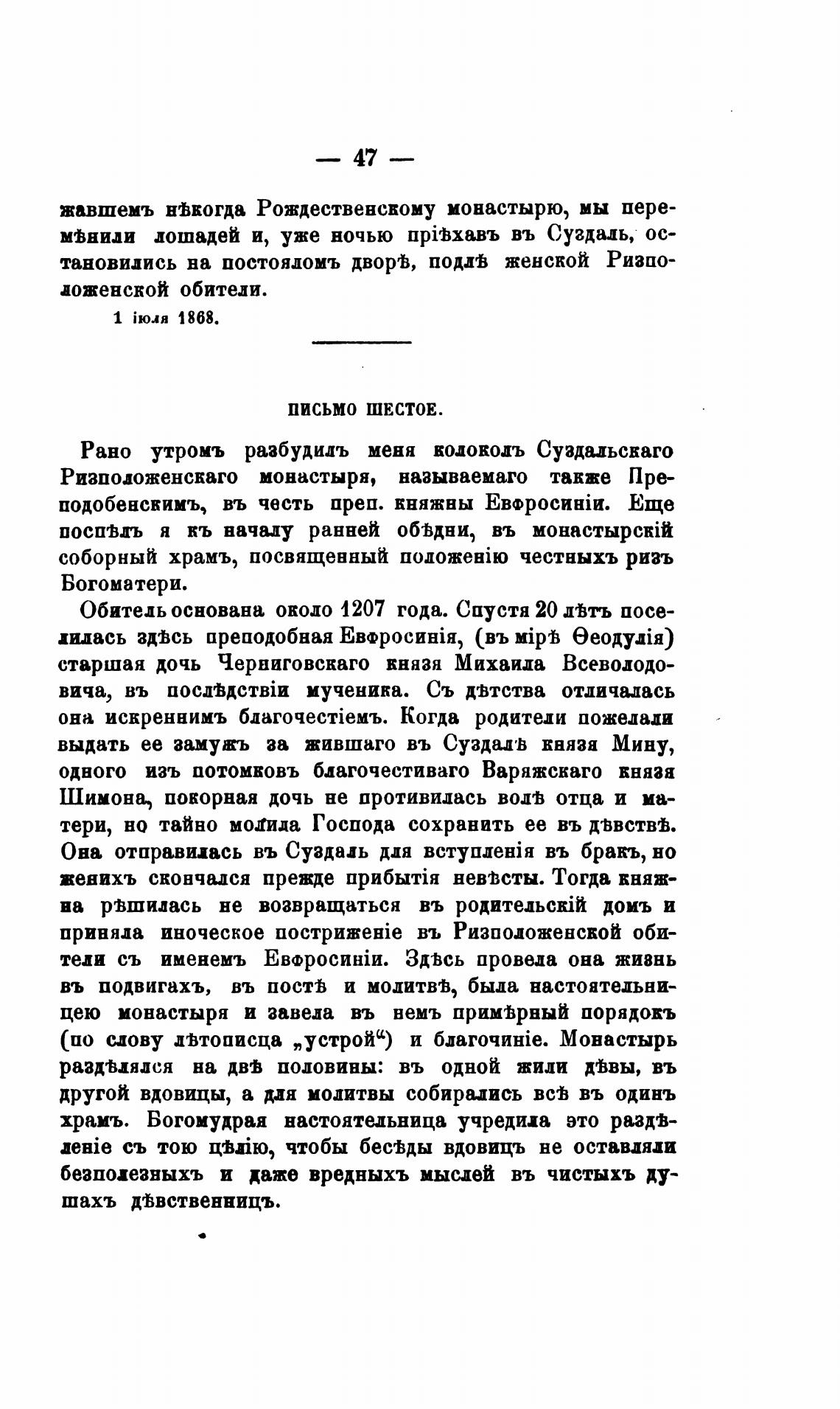 Она отаравииась въ Суздаль для BcTY[IaeHiH въ бракъ, но