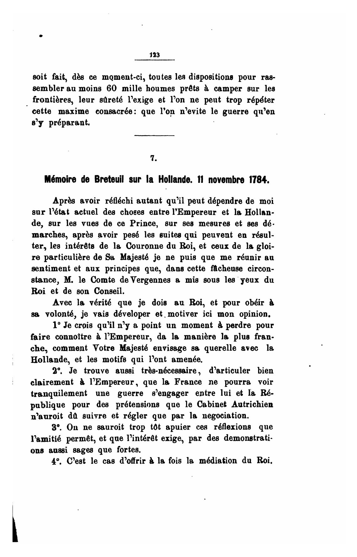 M6moire de BNteuiI зиг Иа Hollande. 11 поуетЬге 1784.