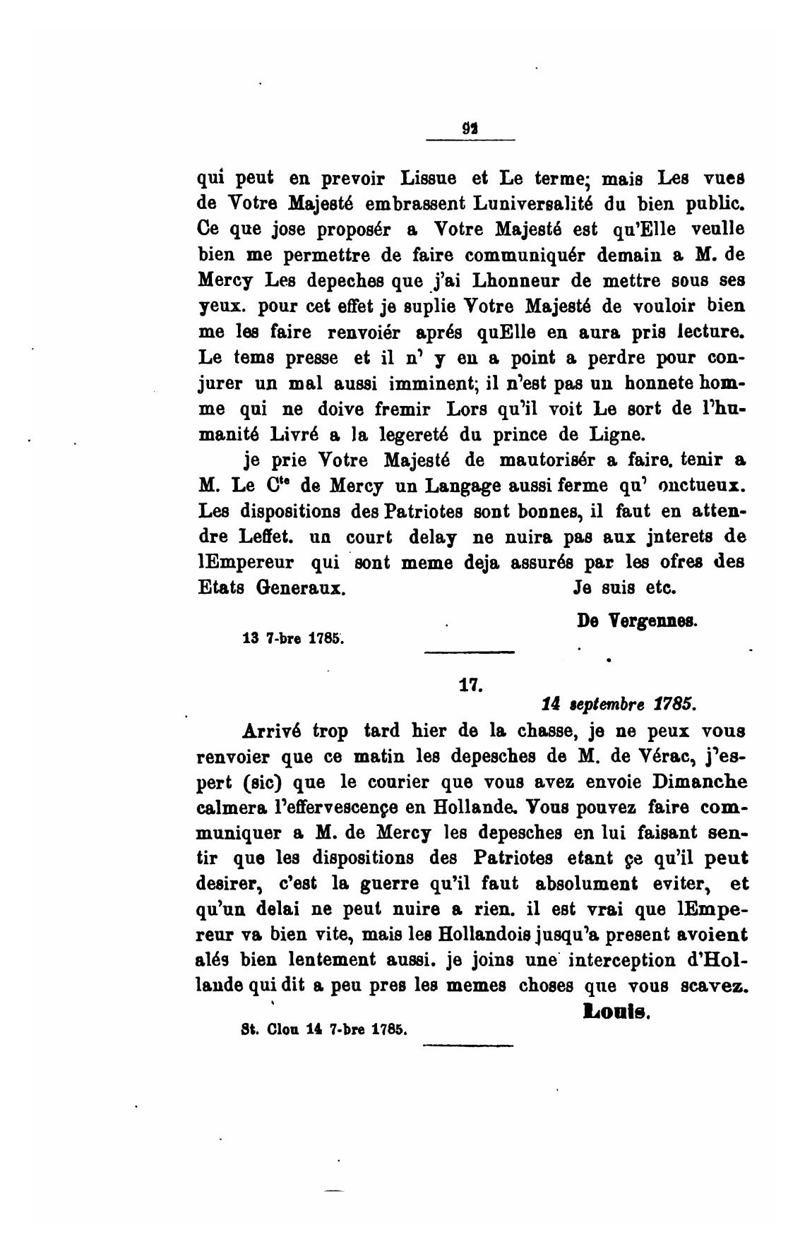 Mercy Les depeches que .j'ai Lhonneur de mettre sous ses