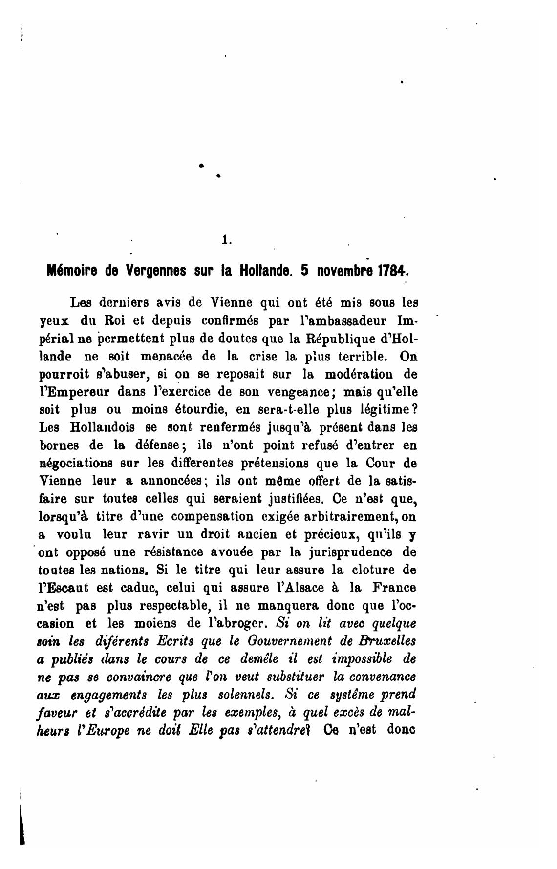 M6moire de Vergennes sur la Hollande. 5 novembN 1784.