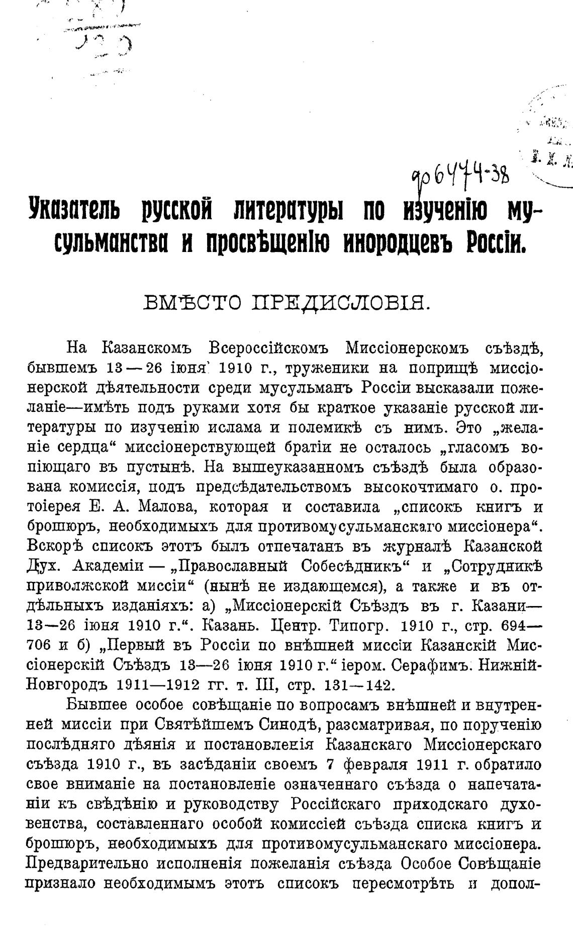 брошюръ, необходимыхъ для противомусульманскаго