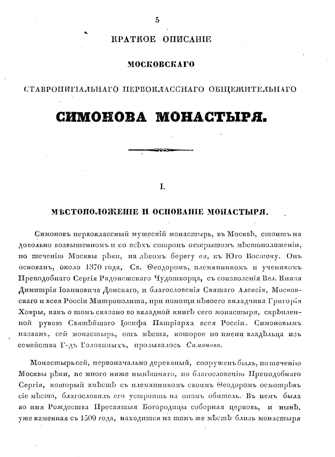 Симоновъ мужес1йй монастырь, въ Москвћ, стоишь на