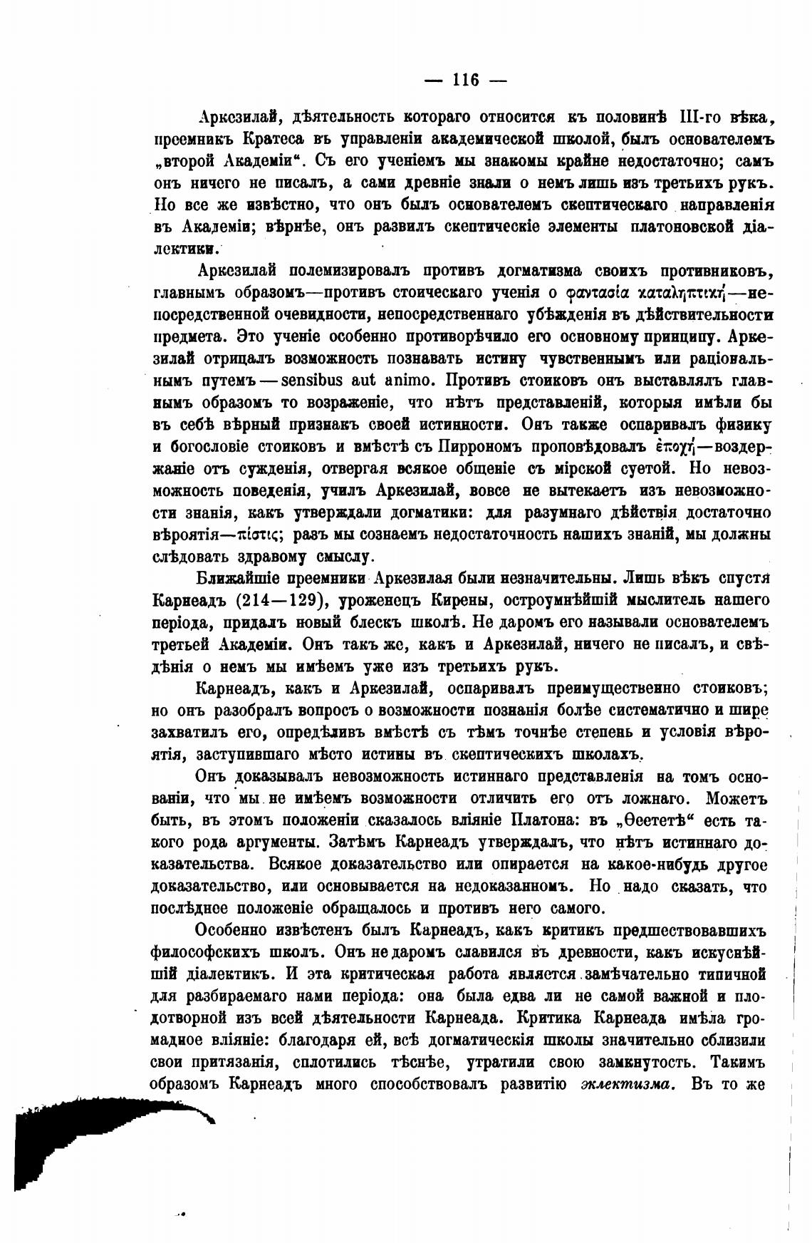 Особенно изв±стенъ быль Карнеадъ, какъ критикъ предшествовавшихъ