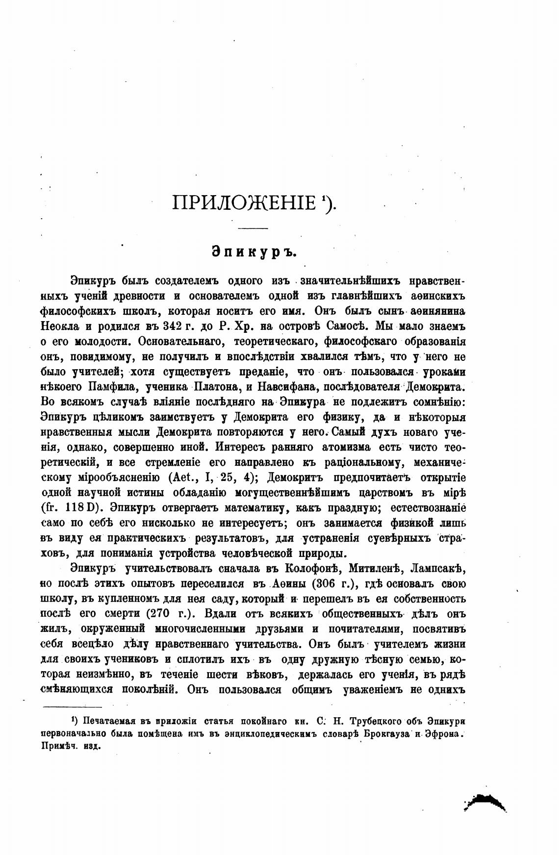 1) Печатаемая въ статья покойнаго кн. С: Н. Трубецкого объ Эпикури