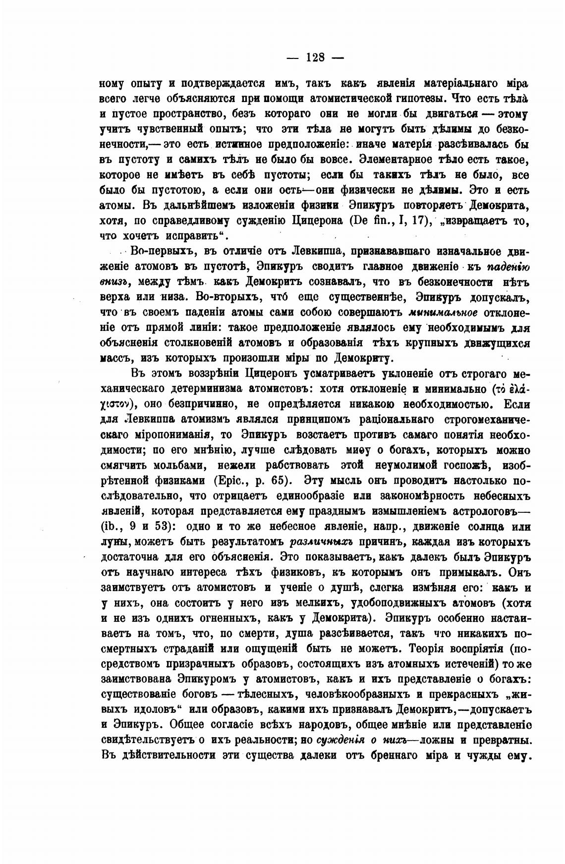 и не изъ однихъ огненныхъ, какъ у Демокрита). Эпикуръ особенно настаи-