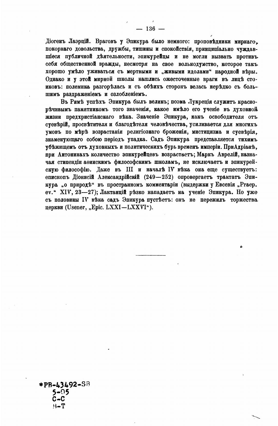 ev." XIV, 23—27); ЛактанцШ р%зко нападаетъ на yqeHie Эпикура. Но уже