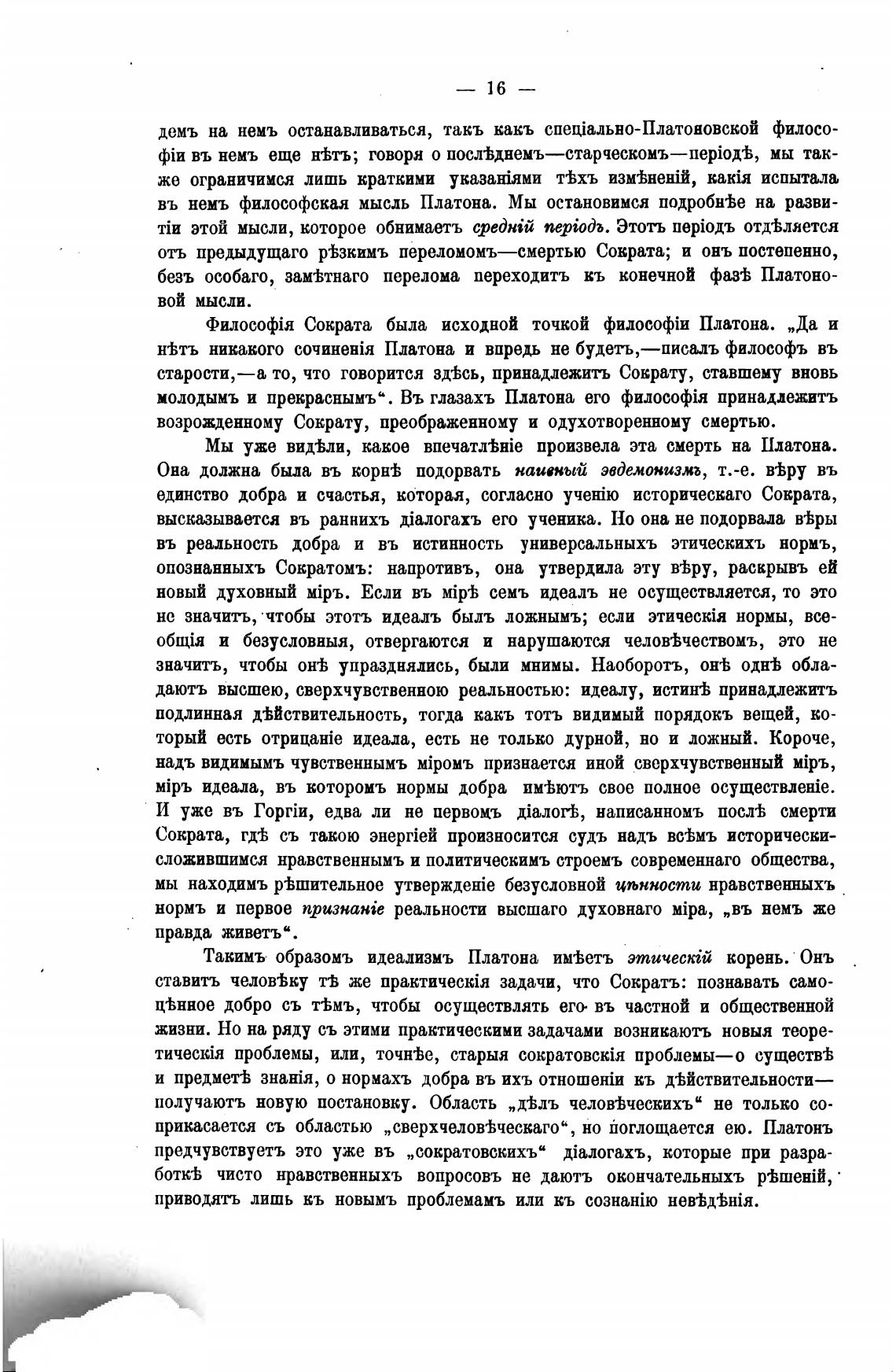 Такимъ образомъ идеализмъ Платона им%етъ корень. Онъ