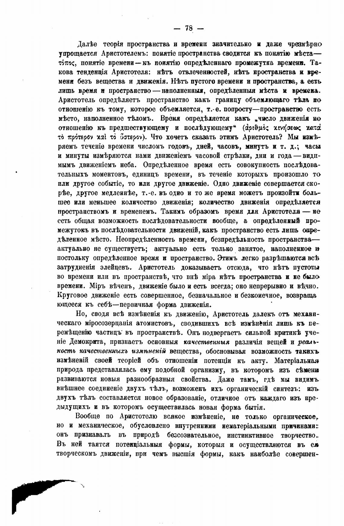 пространствомъ и временемъ. Такимъ образомъ время для Аристотеля — не