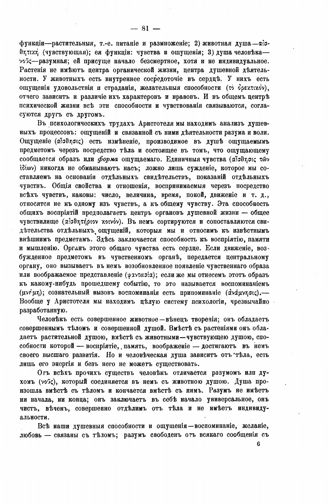 Въ психологическихъ трудахъ Аристотеля мы находимъ анализъ душев-