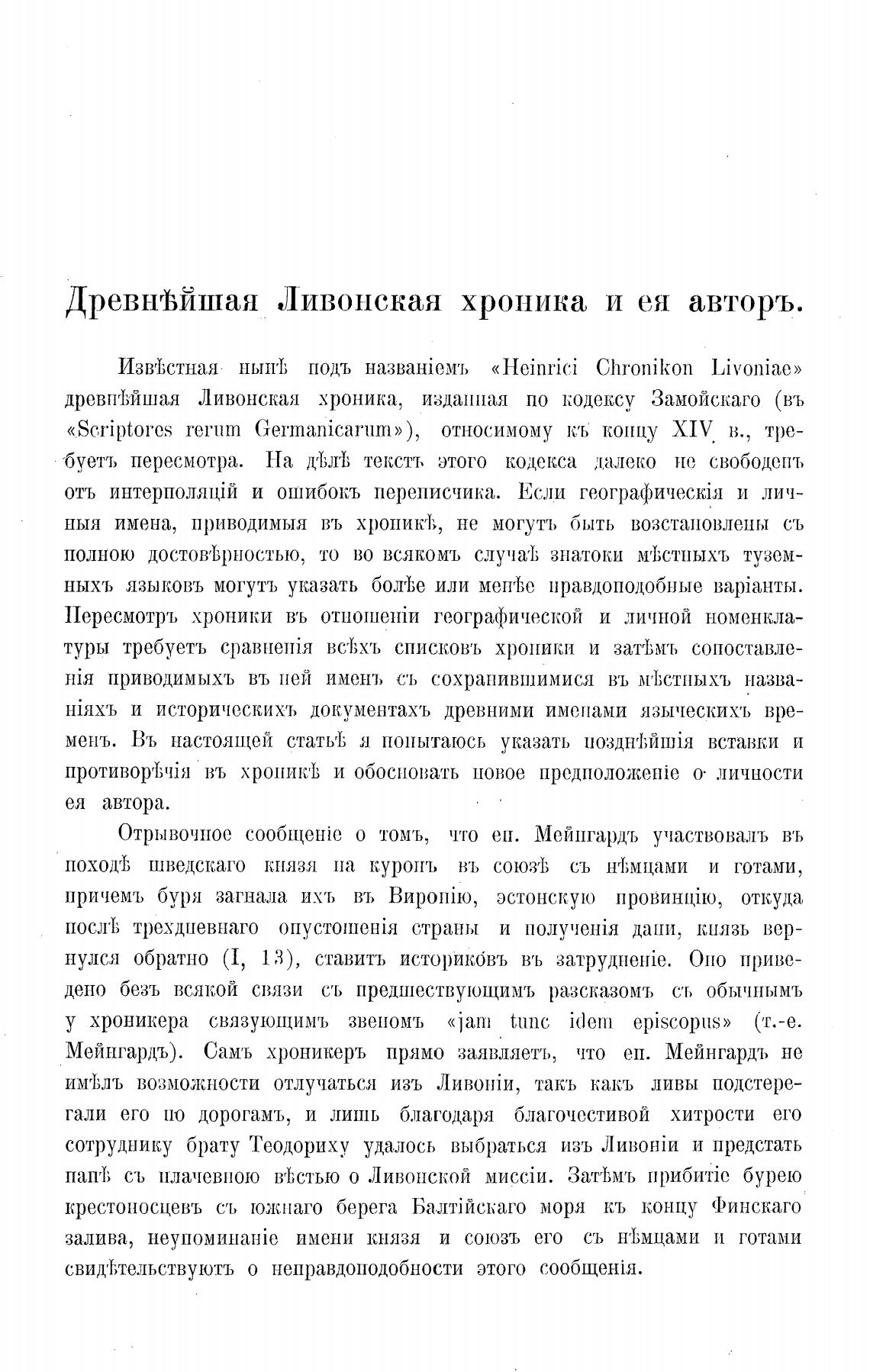 ДревнгВйшая Ливонская хроника и ея авторъ.