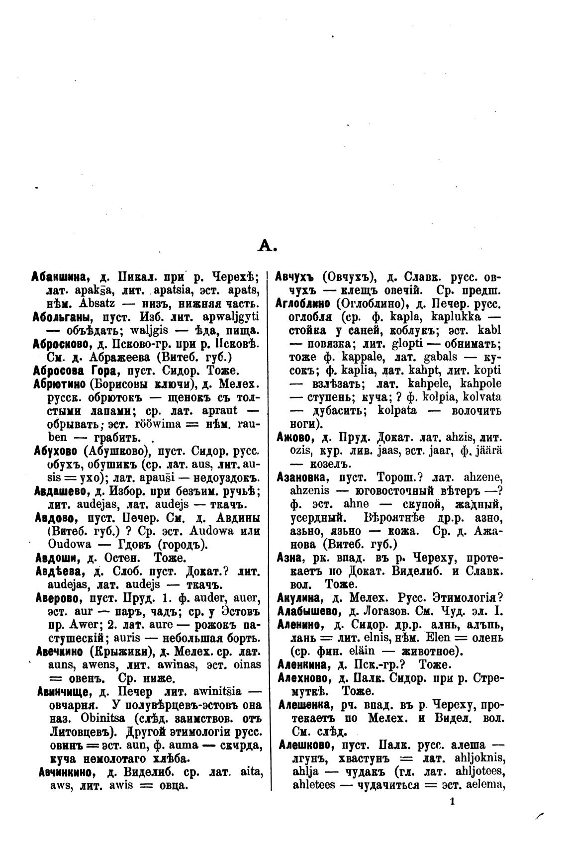 Ажово, д. Пруд. Дожат. лат. ahzis, лит.