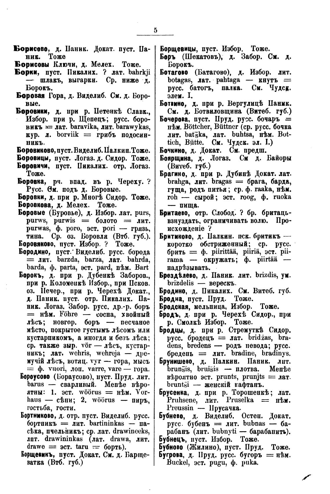 Боровые (Буровье), д. Избор. лат. purs,