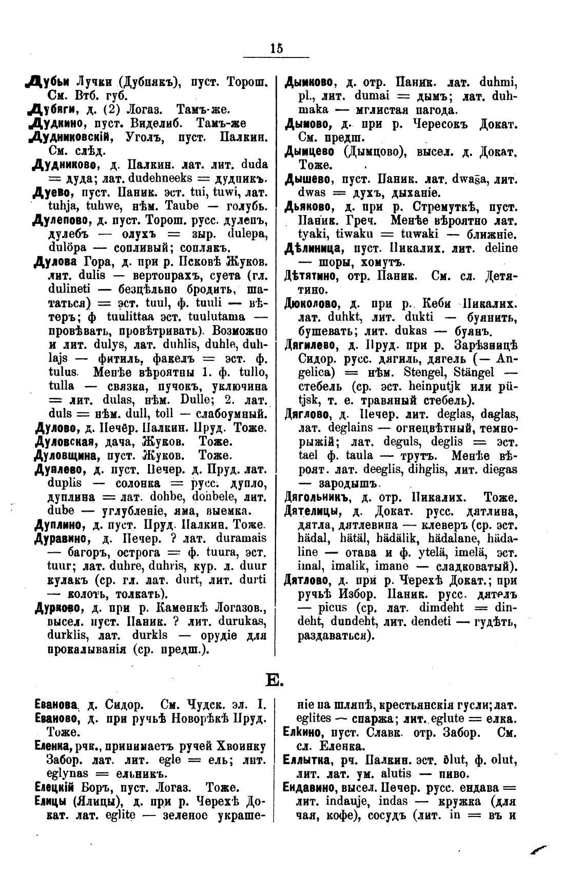 Дудниково, д. Пикин. лат. лит. duda