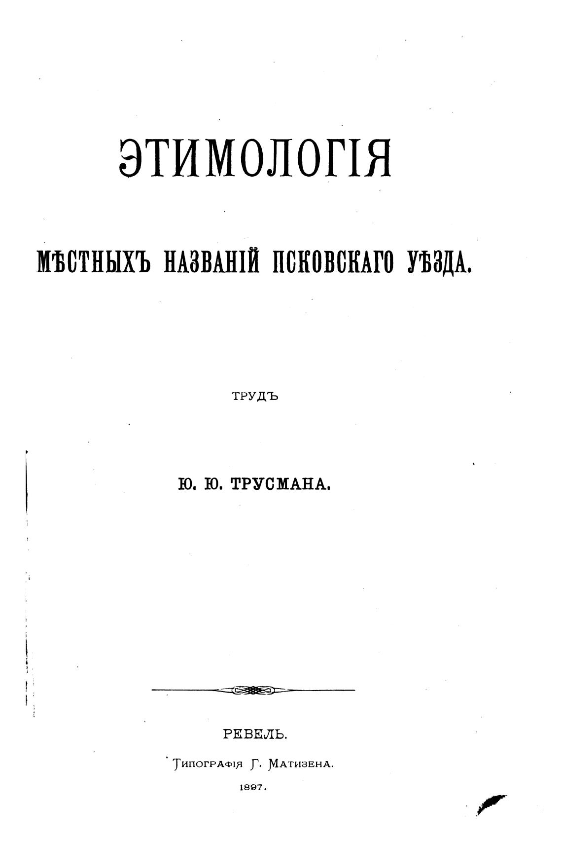 Этимология местных названий Псковского уезда. - Трусман Г. Г. (Ю. Ю. ).