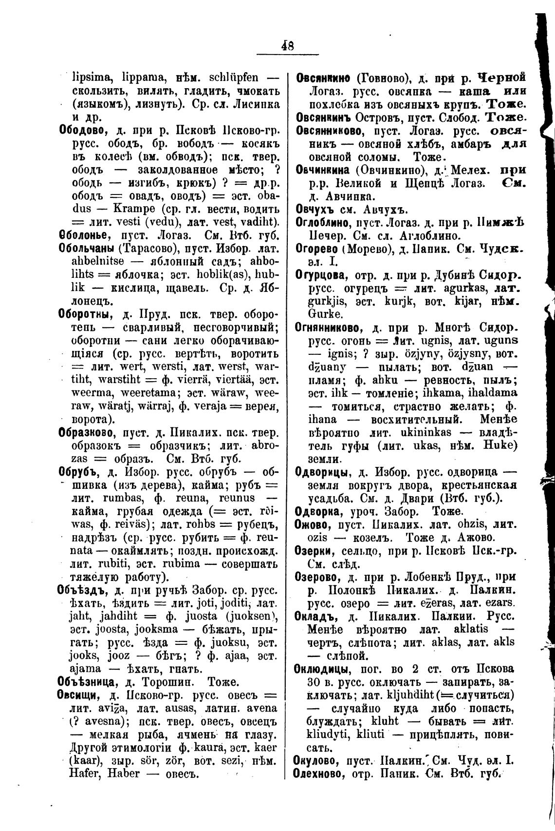 Ожово, пуст. Пикалих. лат. ohzis, лит.