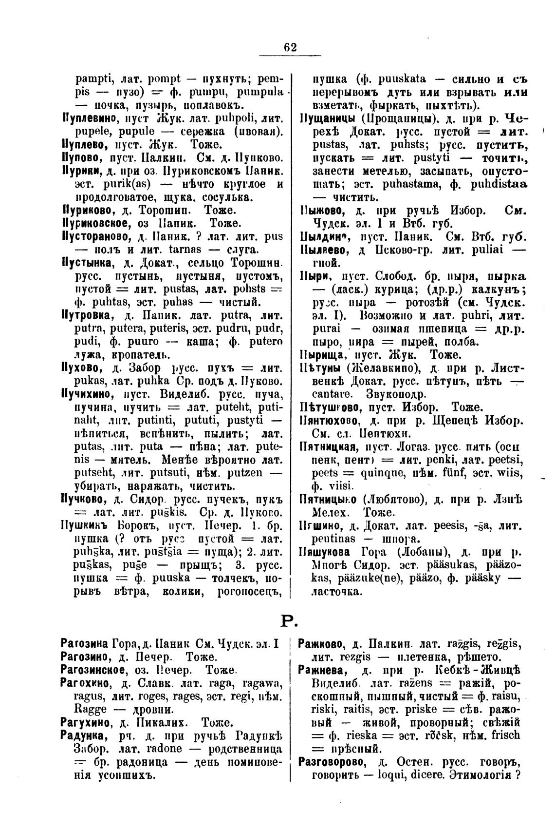 Рагозина Гора, д. Паник См. Чудск. эл.1 Ражково, д. Палкип. лат. raigis, reigis,