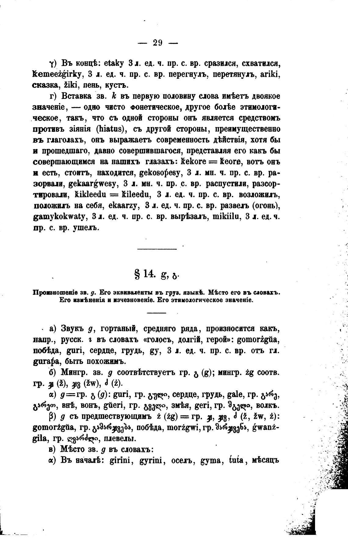 зв. д. Его эквивиенты въ груз. азык±. МВсто его въ словахъ.