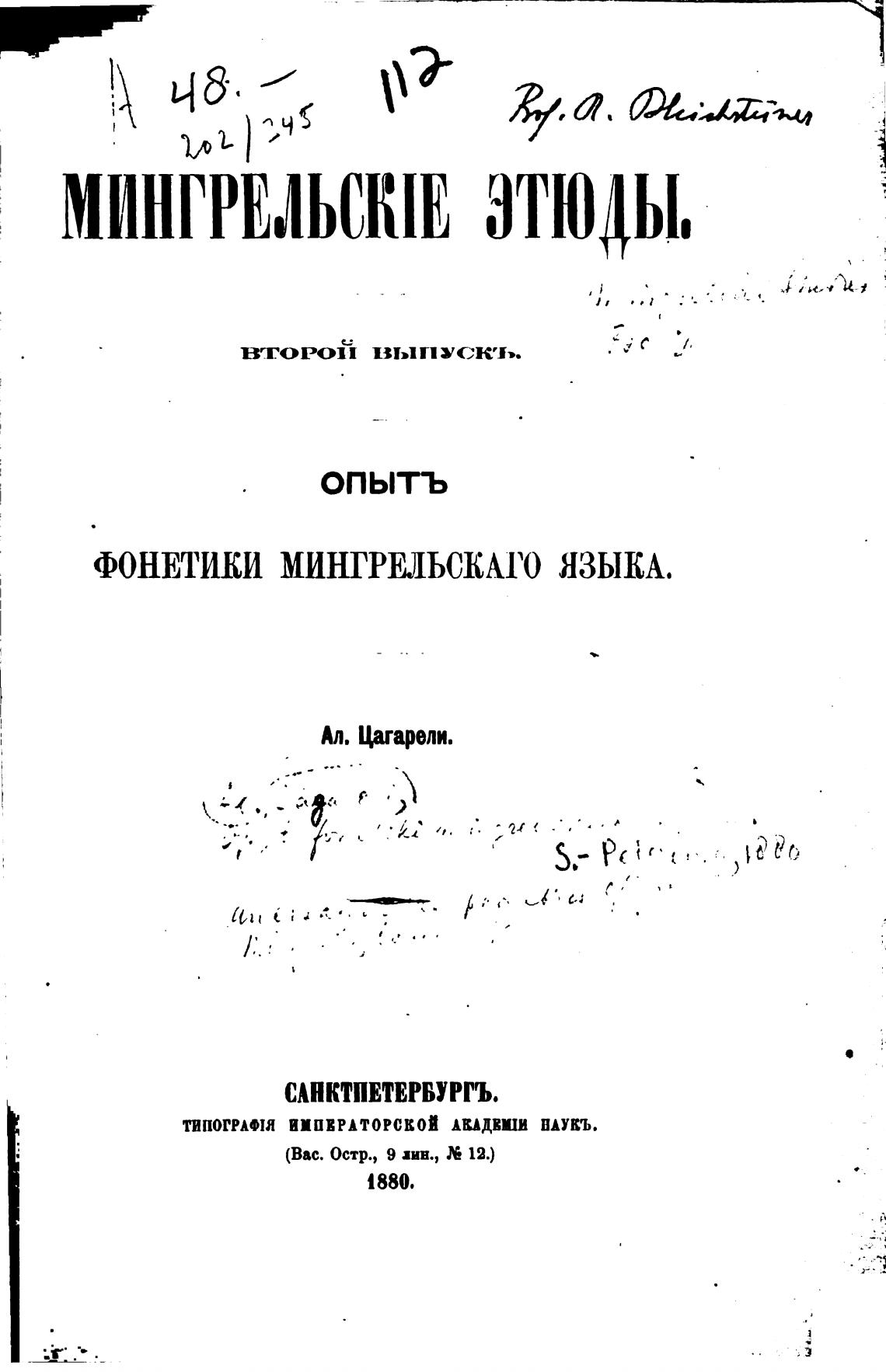 ФОНЕТИКИ МИНГРИЬСКАГО ЯЗЫКА.