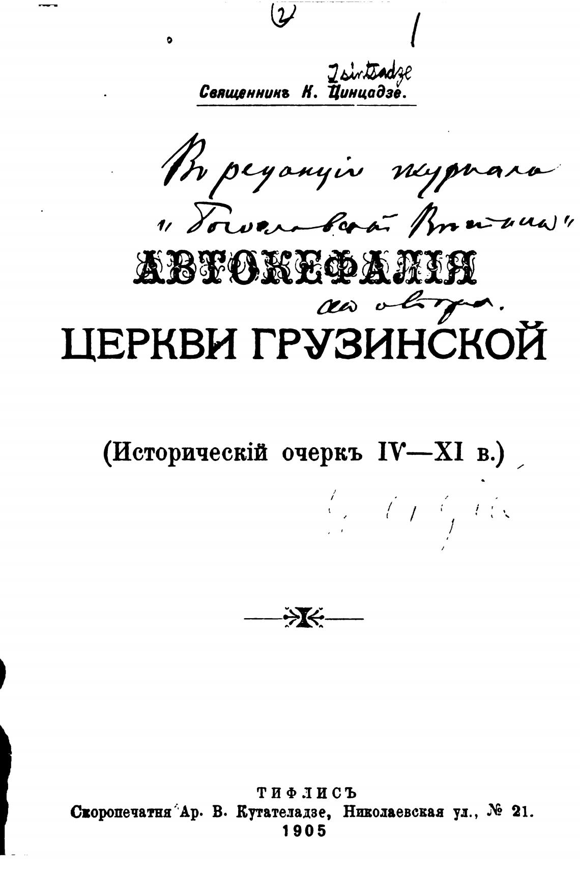 Своропечатня АР. В. Кутатедадзе, Нивопевсваа ул., 21.