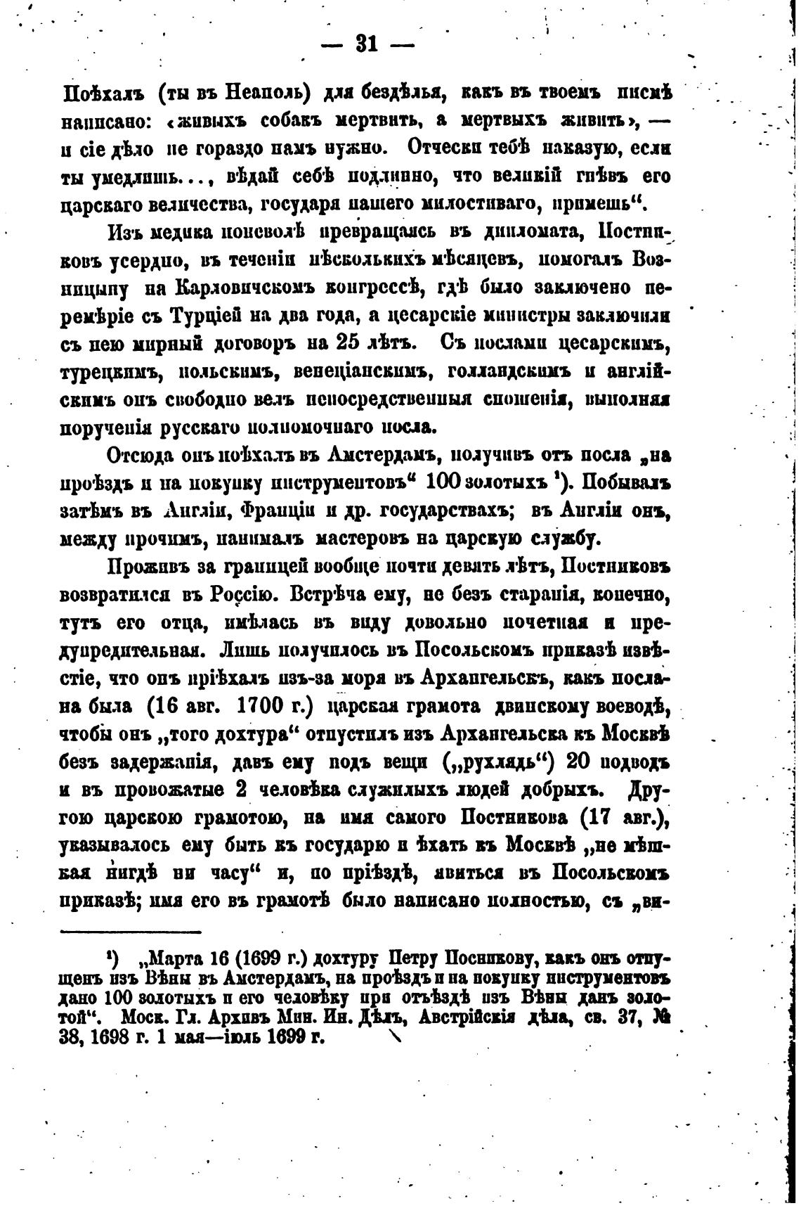 1) „Марта 16 (1699 г.) дохтуру Петру Поснпвову, вавъ онъ отпу-
