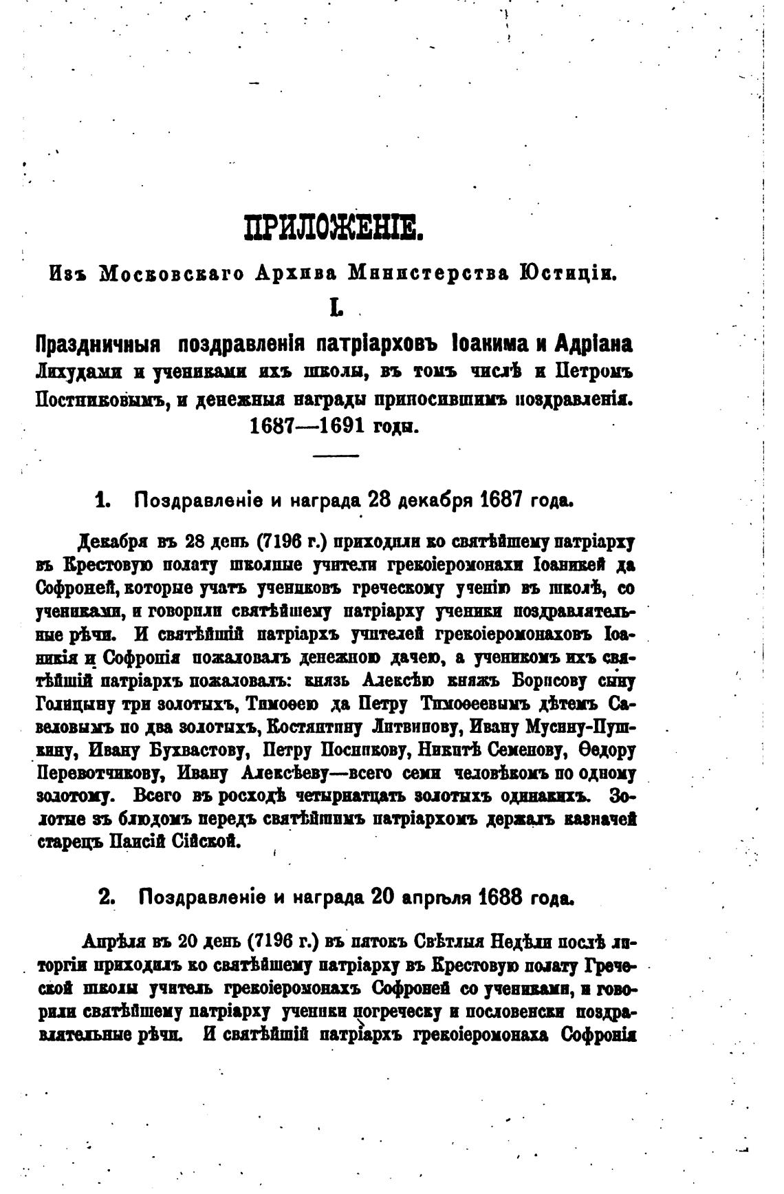 1. Поздравлен;е и награда 28 декабря 1687 года.