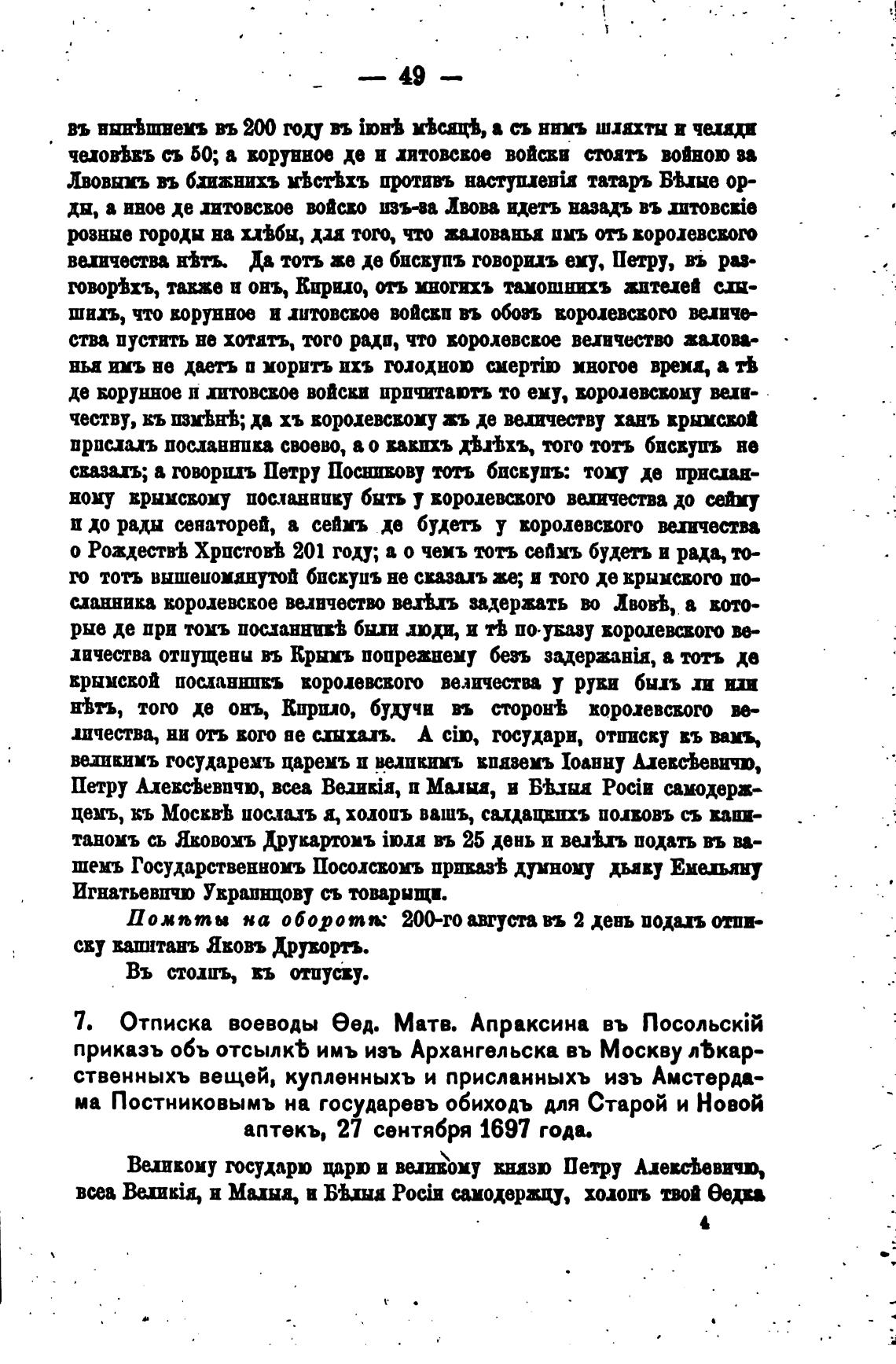 7. Отписка воеводы бед. Матв. Апраксина въ