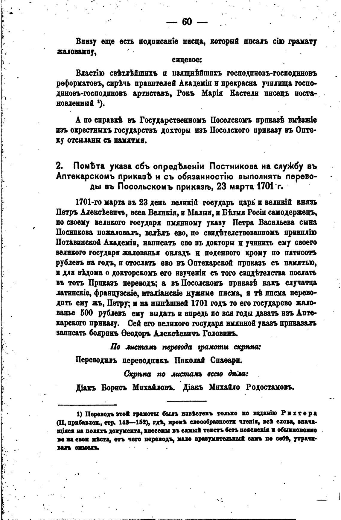 ды въ Посольскомъ приказљ, 23 марта 1701 т.