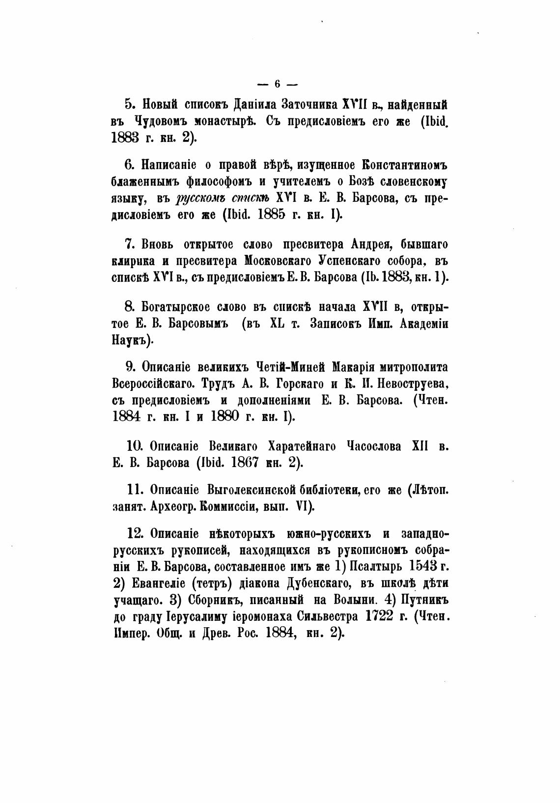 спискв XYI в., съ Е. В. Барсова (Ib. 1883, кн. 1).