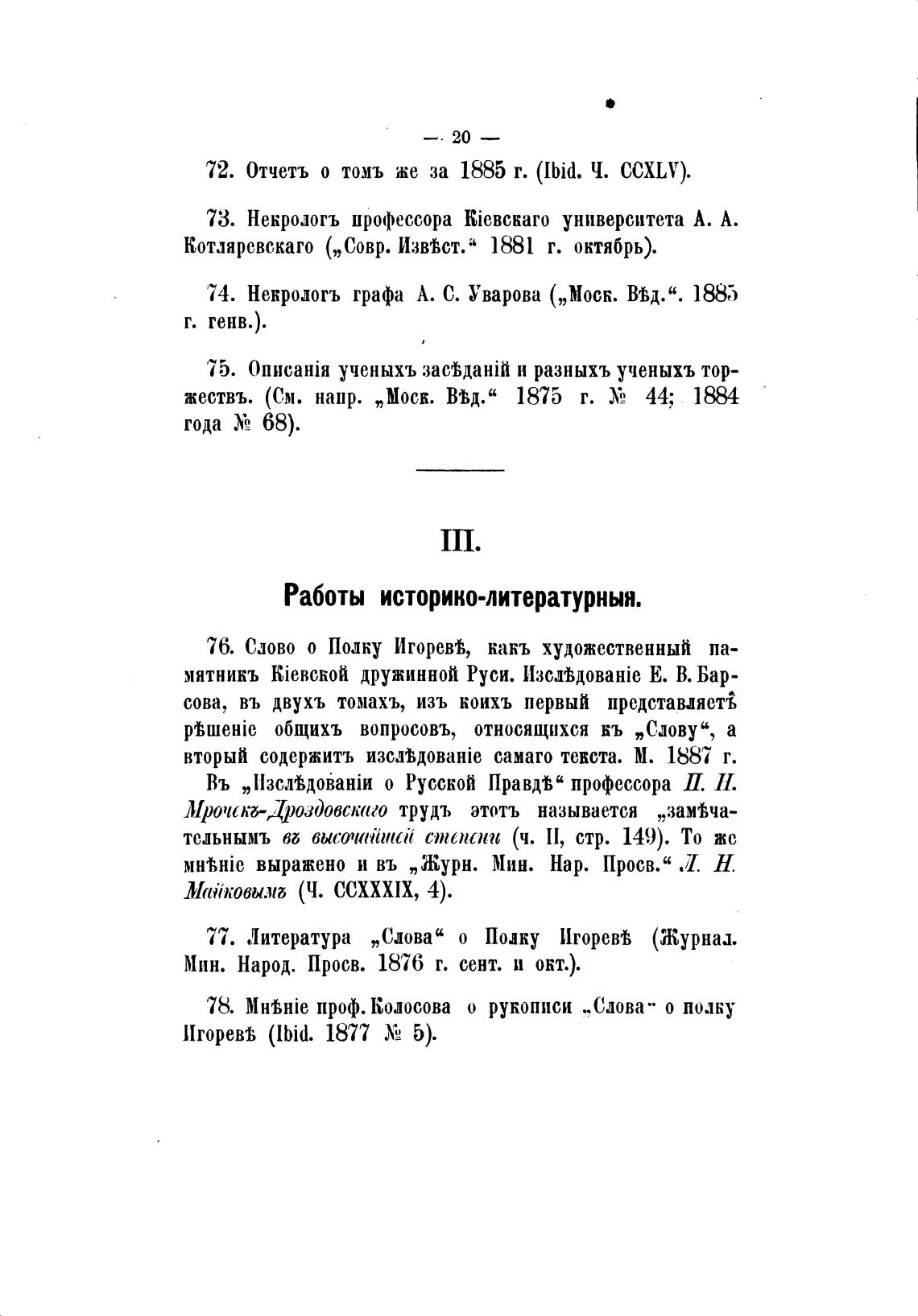 72. Отчетъ о томъ же за 1885 т. (Ibid. Ч. CCXLV).